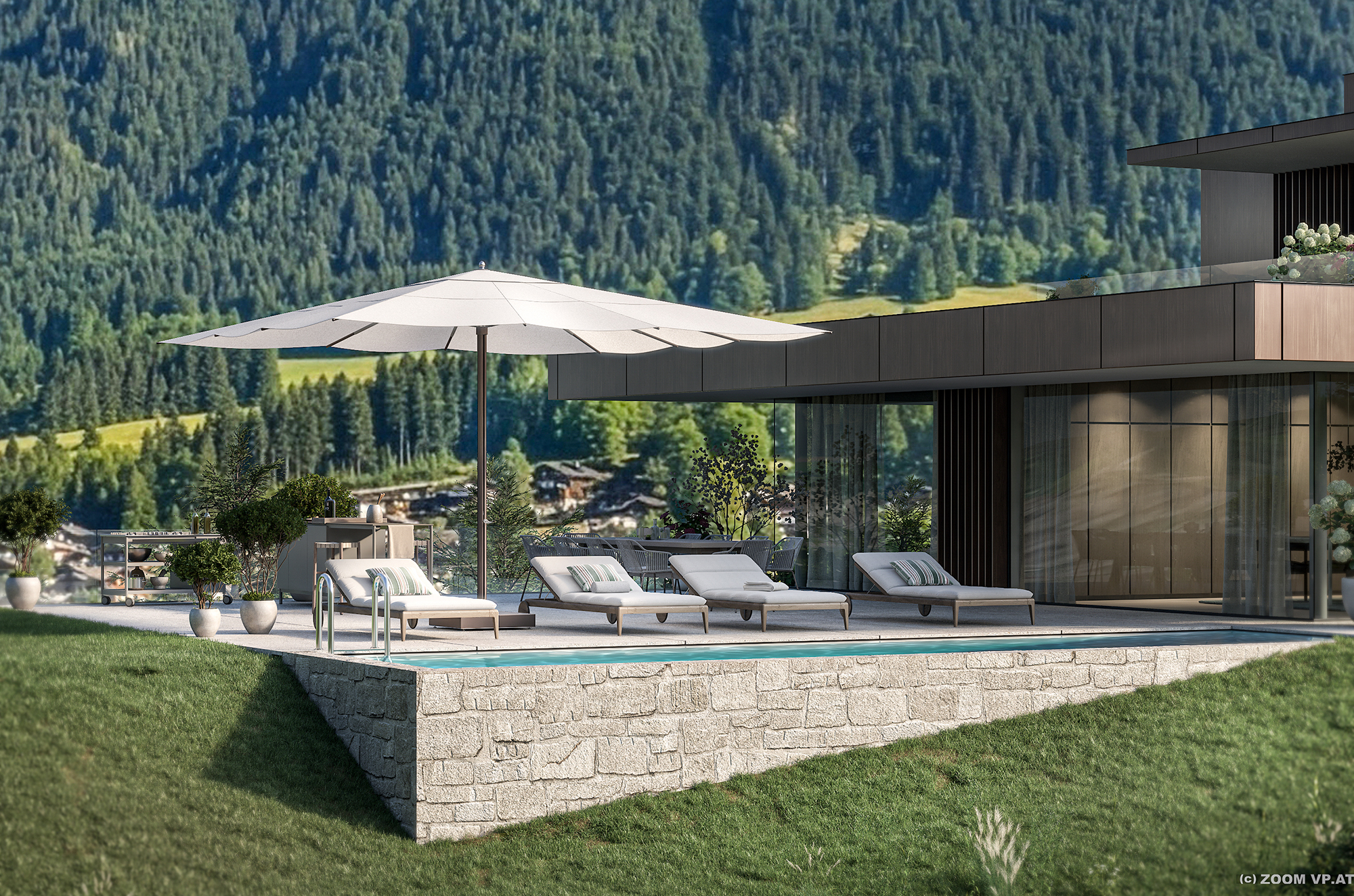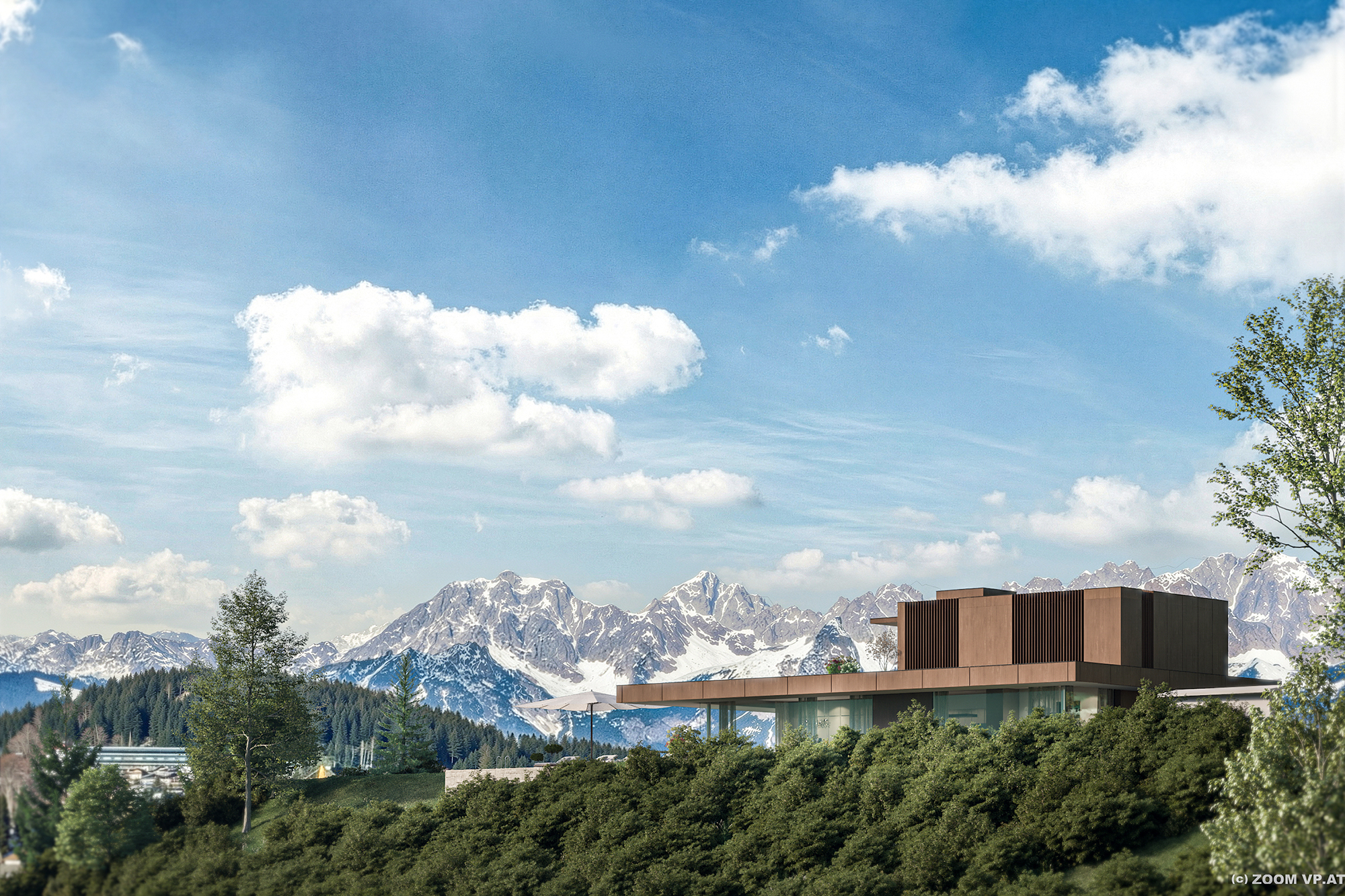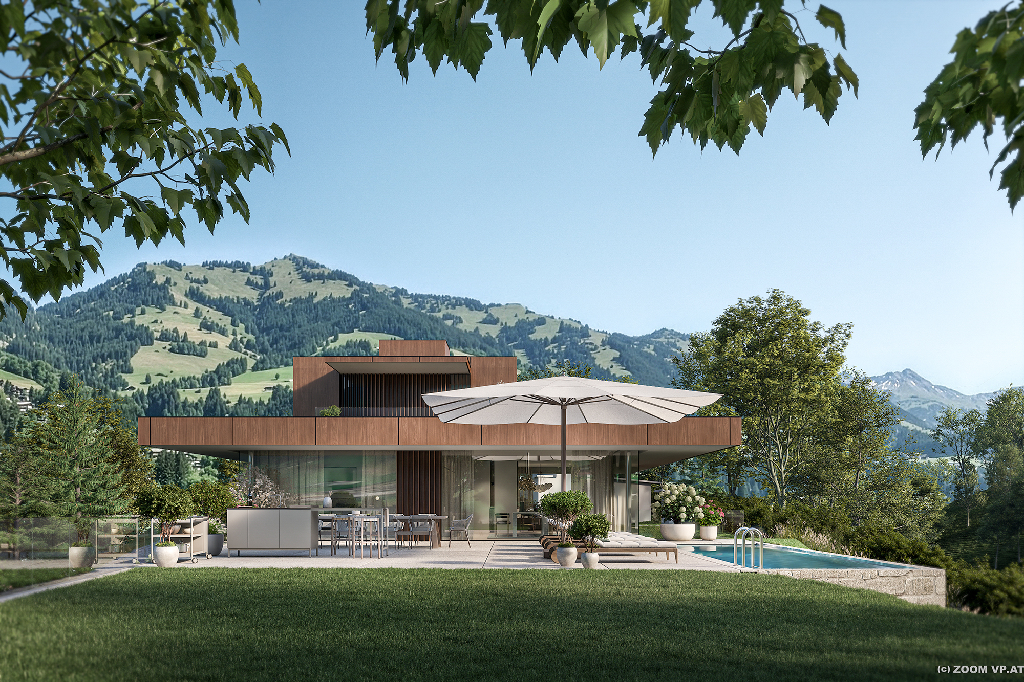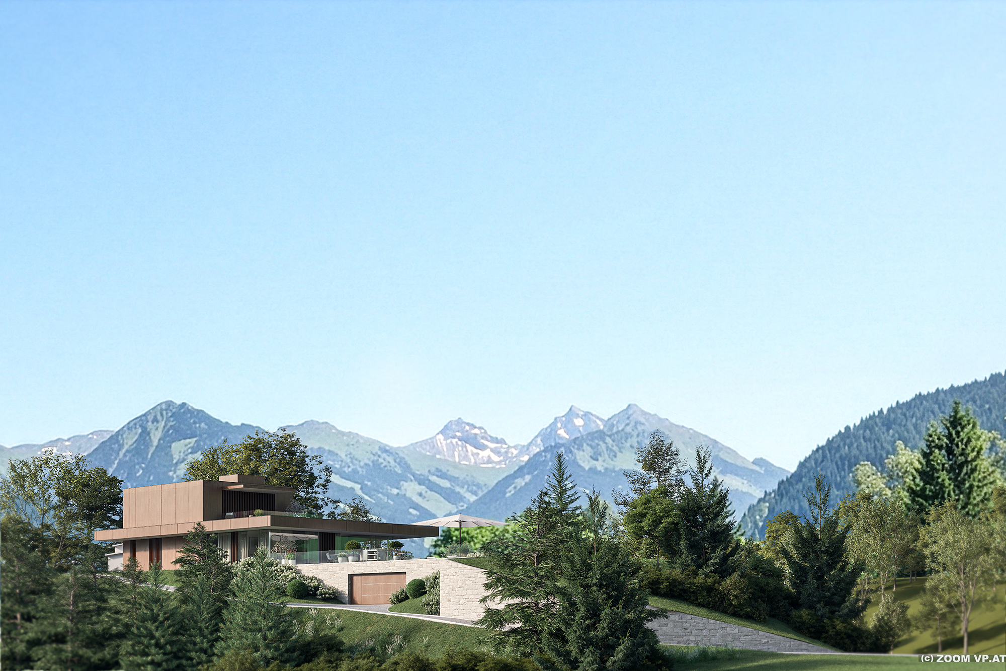 In Alleinlage auf einer kleinen Anhöhe in zentraler Lage von Kitzbühel steht dieses außergewöhnliche Grundstück mit rechtskräftiger Baubewilligung für eine Architektenvilla zum Verkauf. Das ca. 2.450 m² große Grundstück verfügt über eine Baugenehmigung für eine Villa auf drei Ebenen mit Pool, Lift, Wellnessbereich und Tiefgarage. Die Planung sieht eine Wohnnutzfläche von ca. 222 m² und eine Gesamtnutzfläche von ca. 560 m² vor. Des Weiteren sind großzügige Garten- und Terrassenflächen eingeplant: Untergeschoss-Atrium, Erdgeschoss-Terrasse, Garten und Außenbereich, Obergeschoss-Terrasse im Gesamtausmaß von ca. 1.670 m².