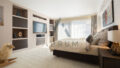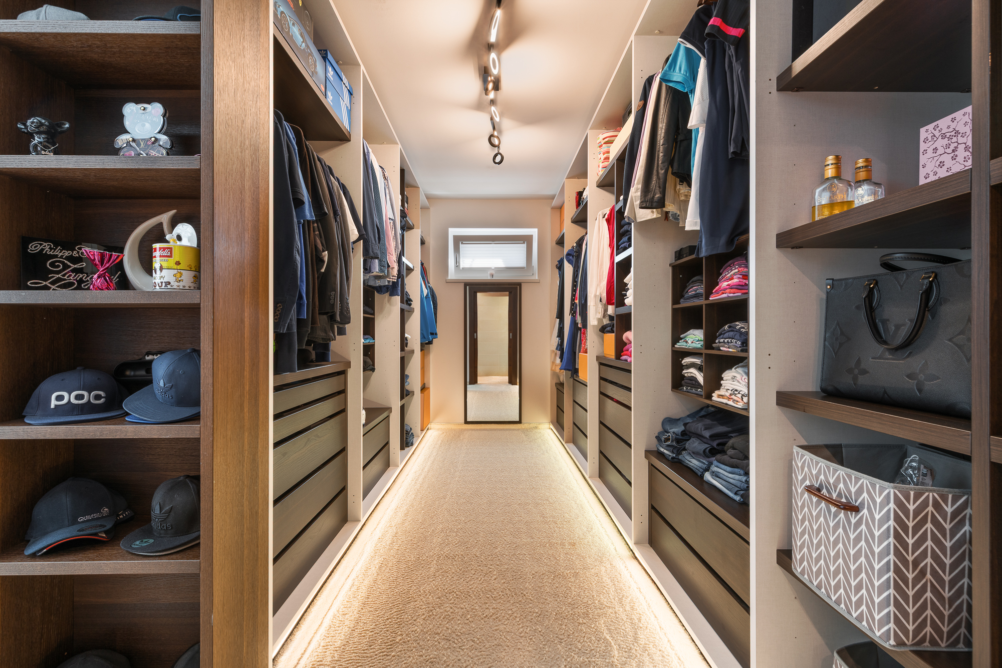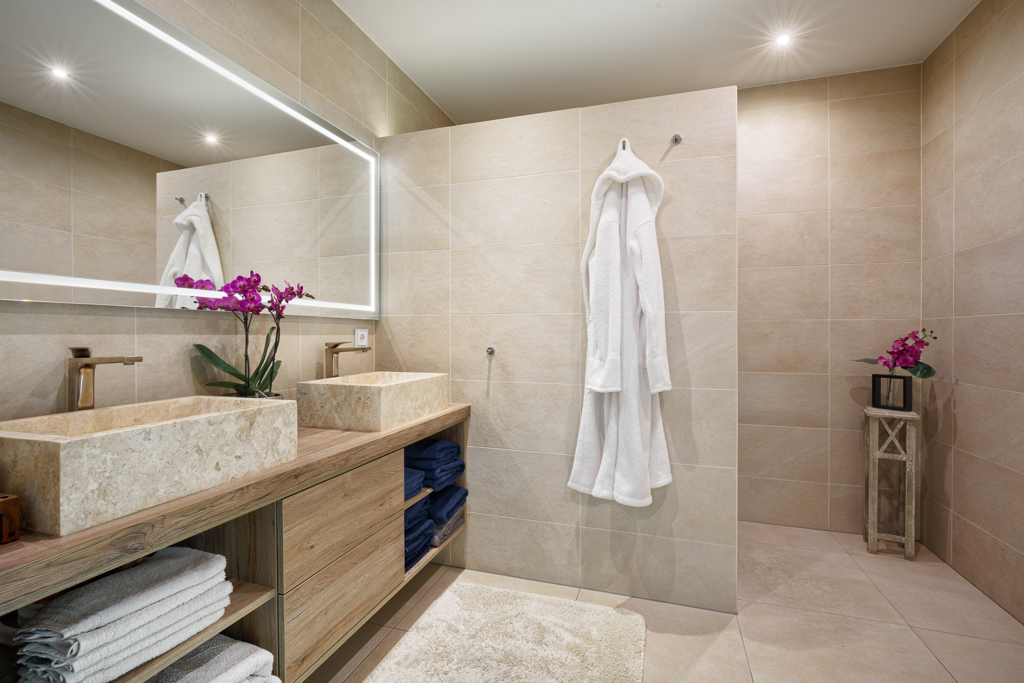 Im Obergeschoss befindet sich der Eingangsbereich mit Garderobe, das Master Schlafzimmer inklusive Ankleideraum, Bad en suite und Zugang zum Balkon. Ebenfalls auf dieser Etage untergebracht ist ein zweites Schlafzimmer und Badezimmer.