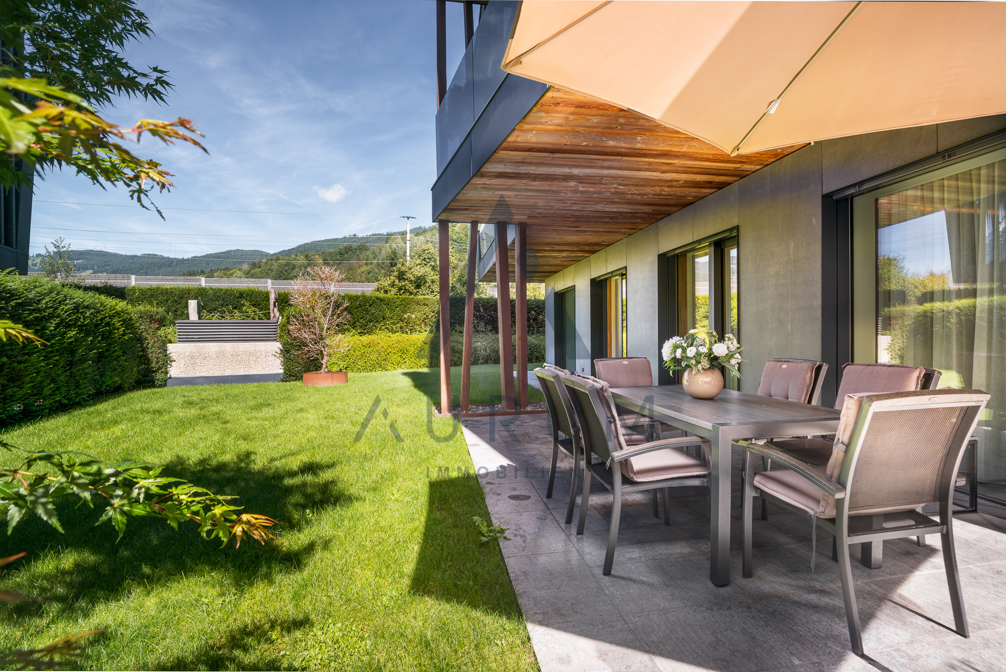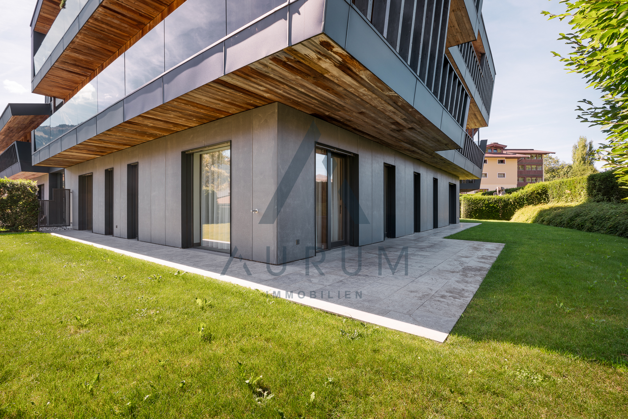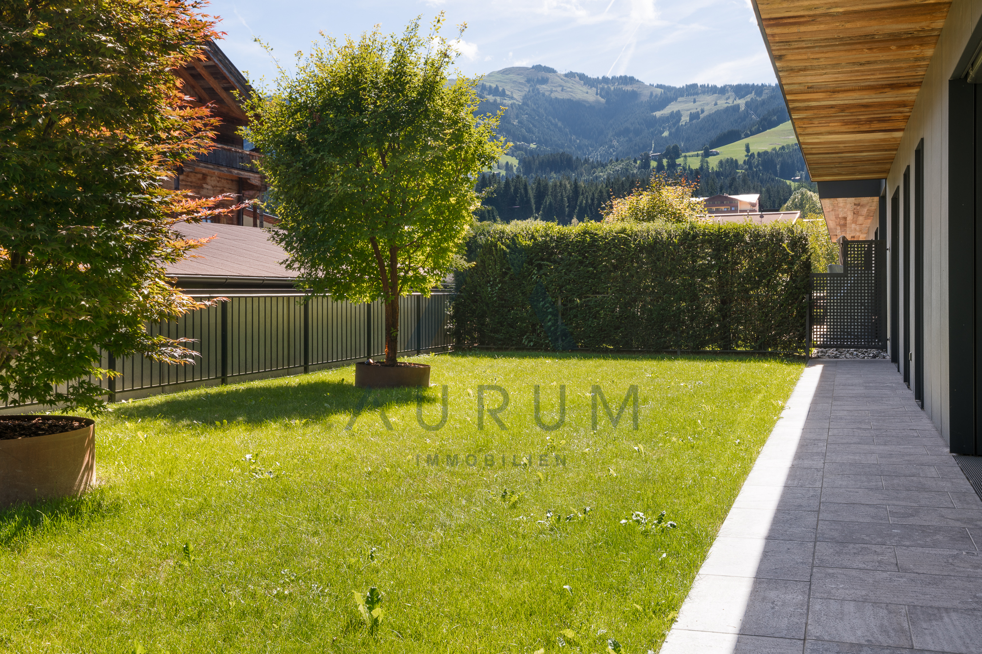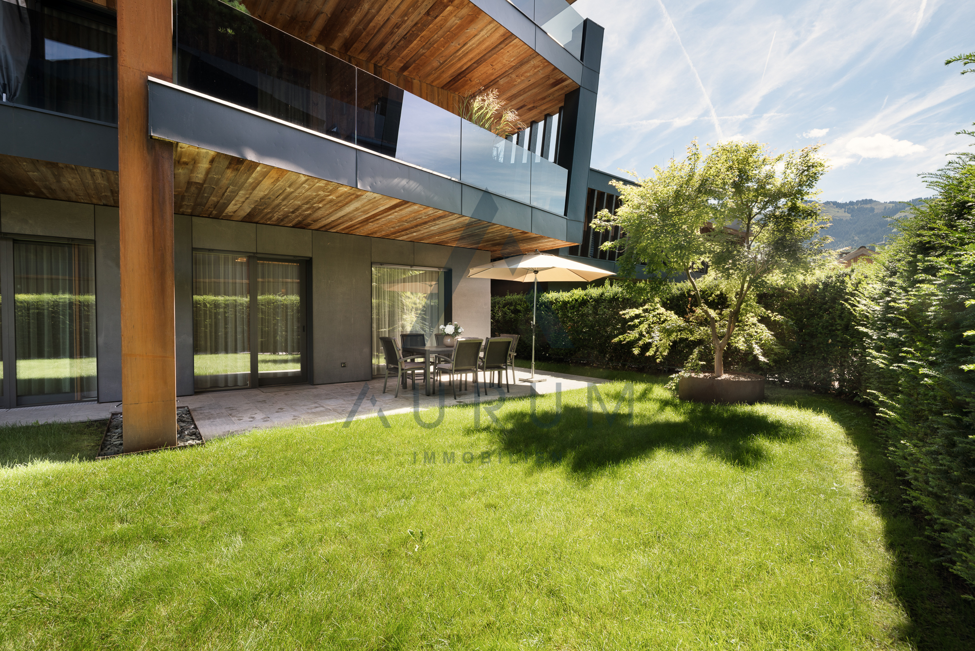 Diese hochwertige Designer-Gartenwohnung liegt in zentrumsnaher Lage von Kirchberg in Tirol mit Blick auf die umliegende Bergwelt.