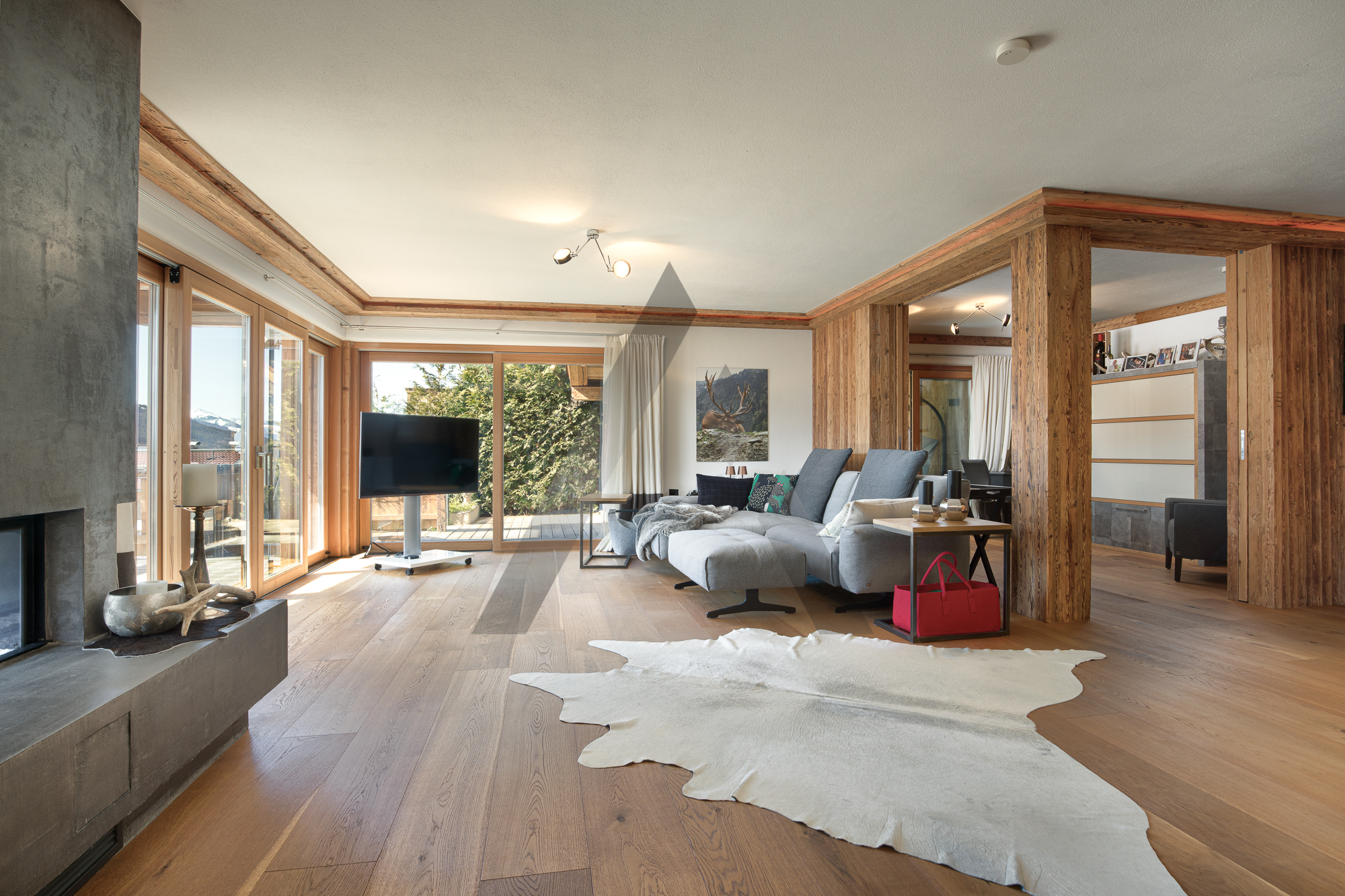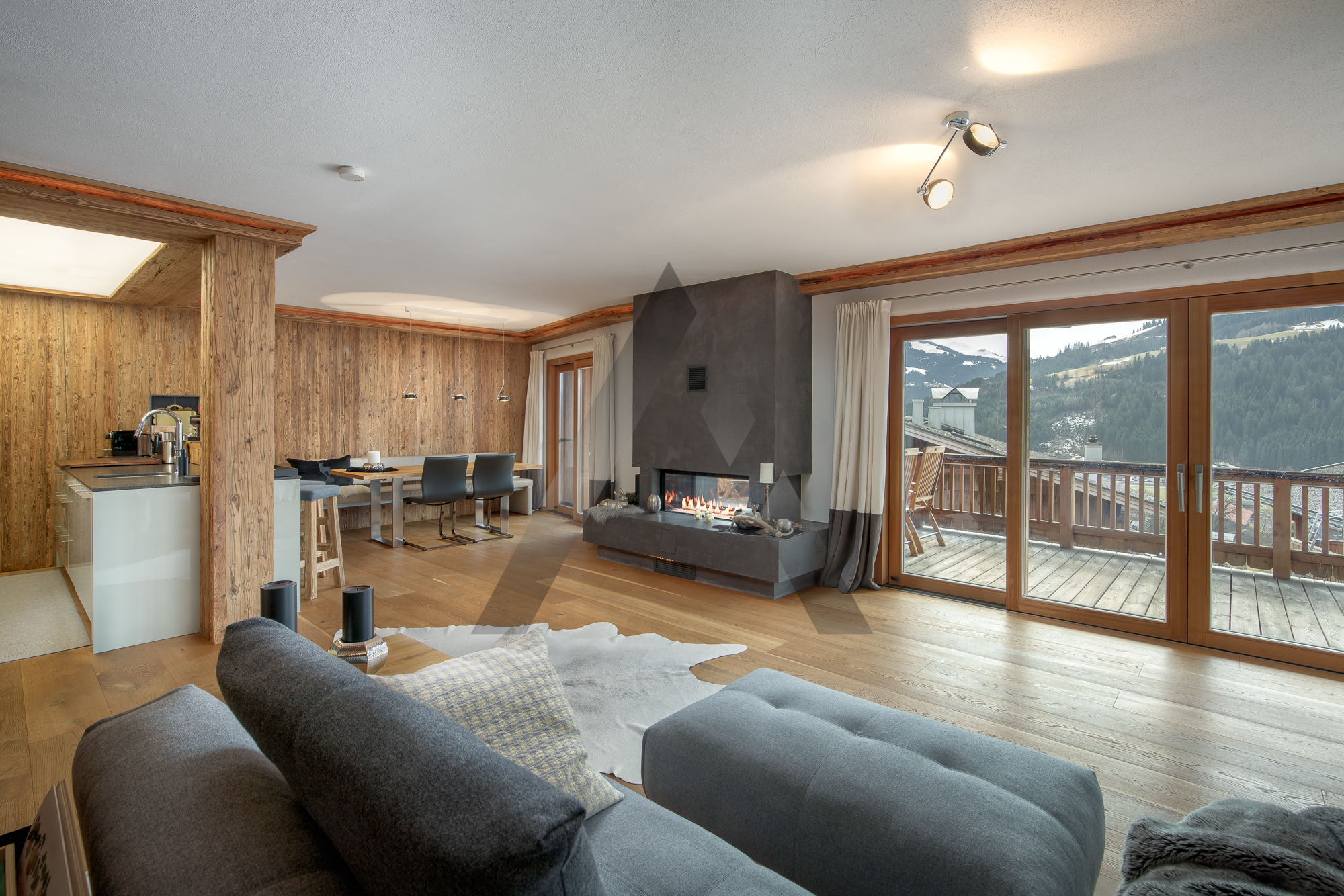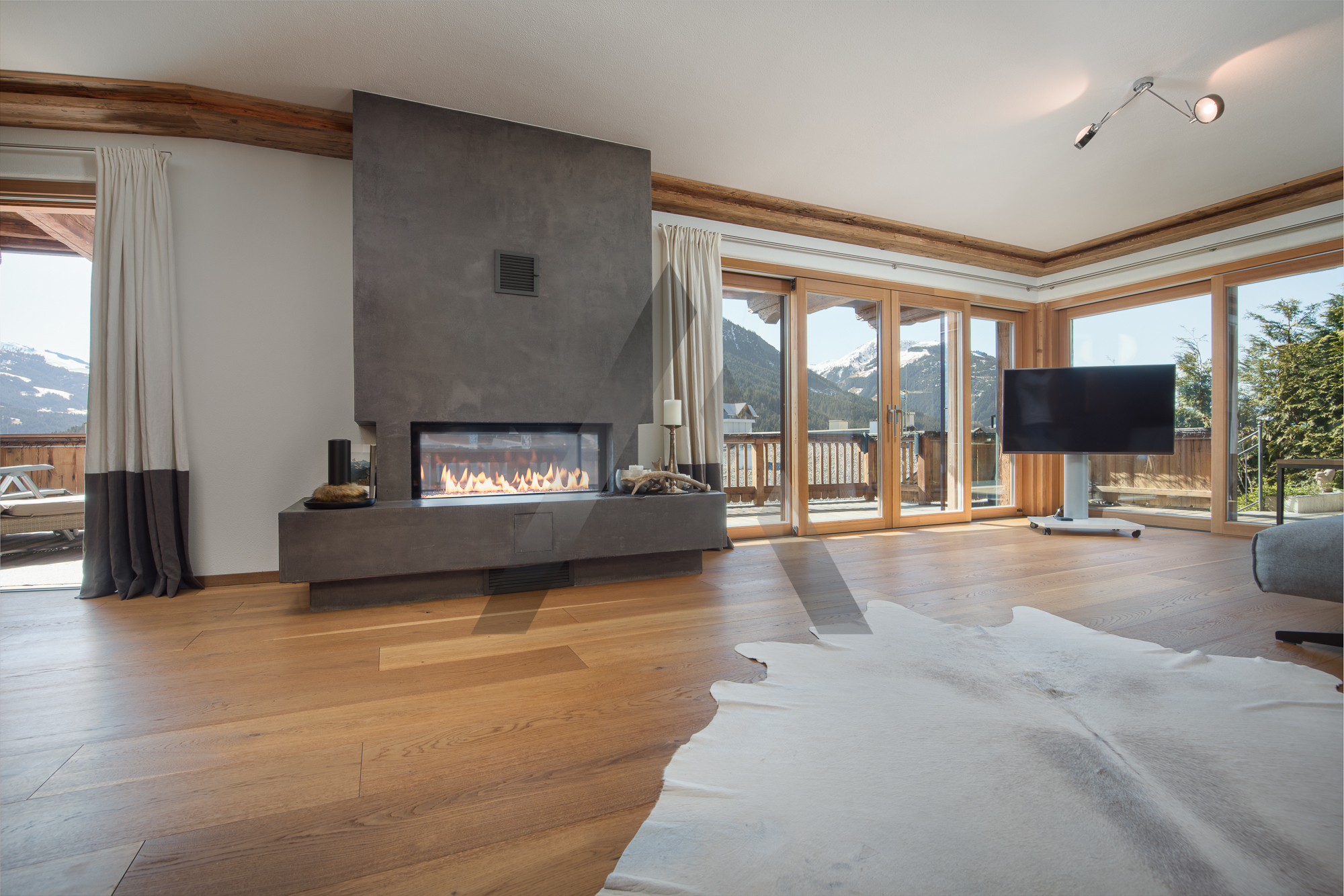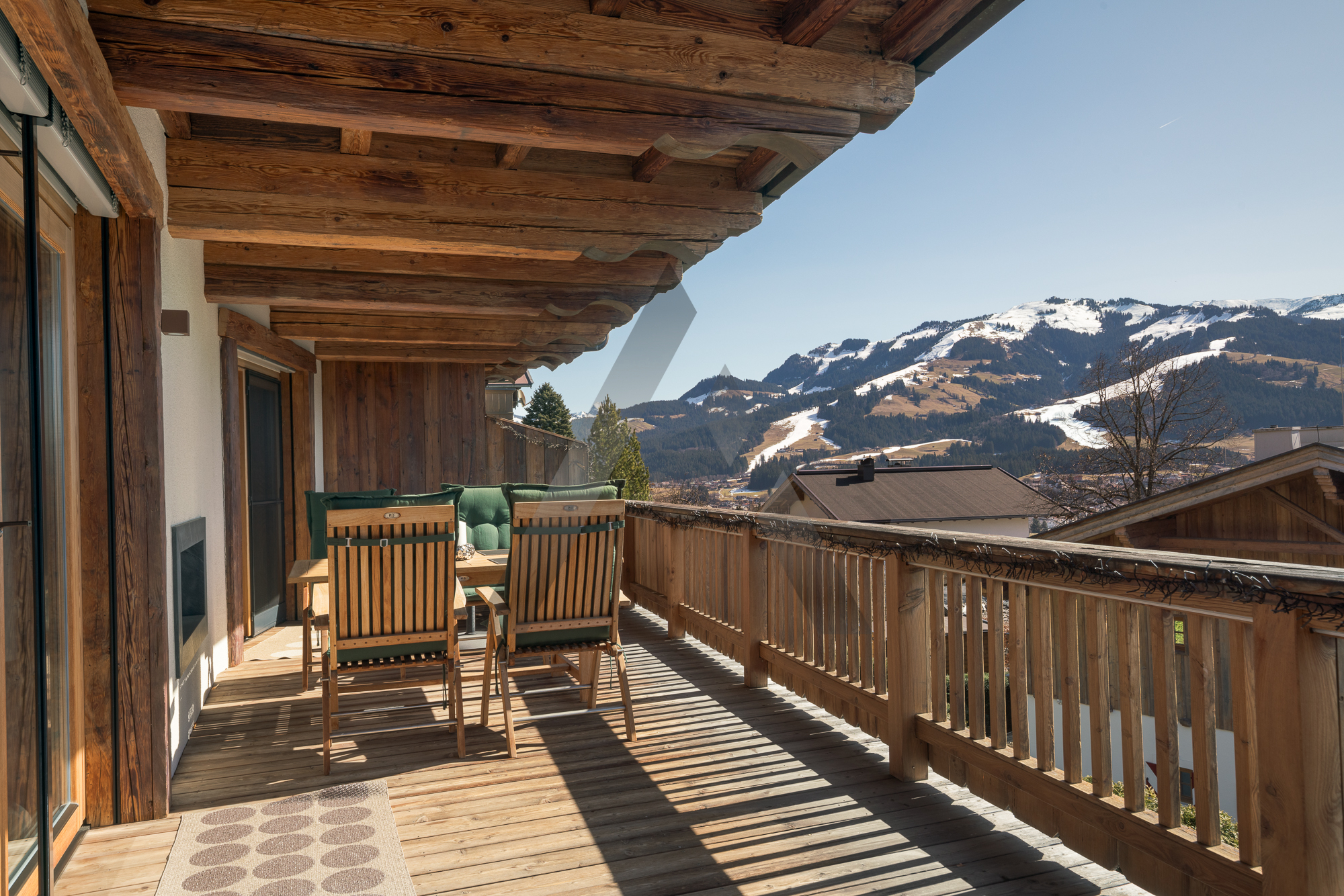 Diese hochwertige Maisonettewohnung wurde in sonniger Lage erbaut und bietet einen Panoramablick ins Spertental, ins Brixental und auf die umliegenden Kitzbüheler Alpen, unter anderem zum Hahnenkamm und auf die Mausefalle.