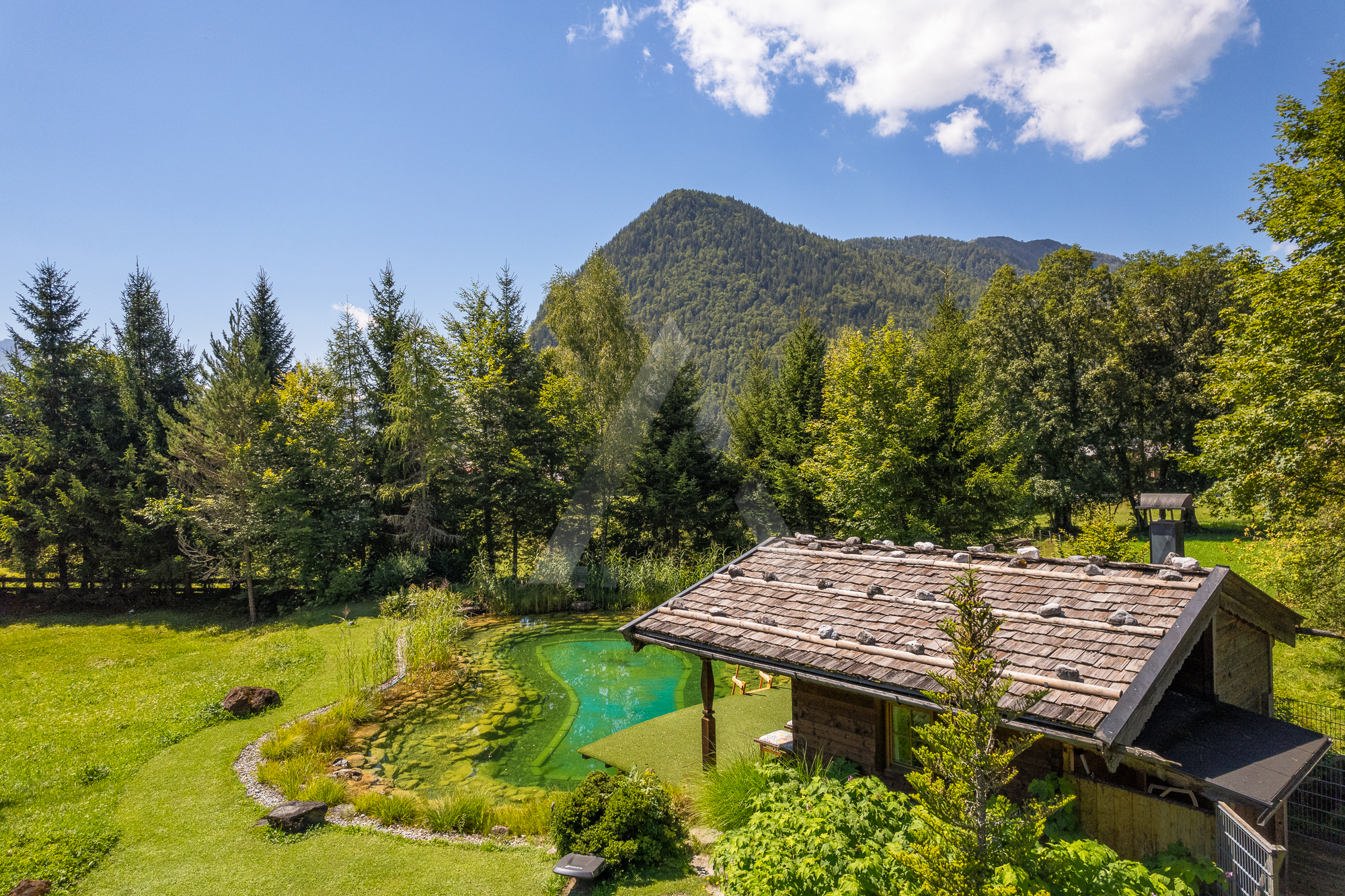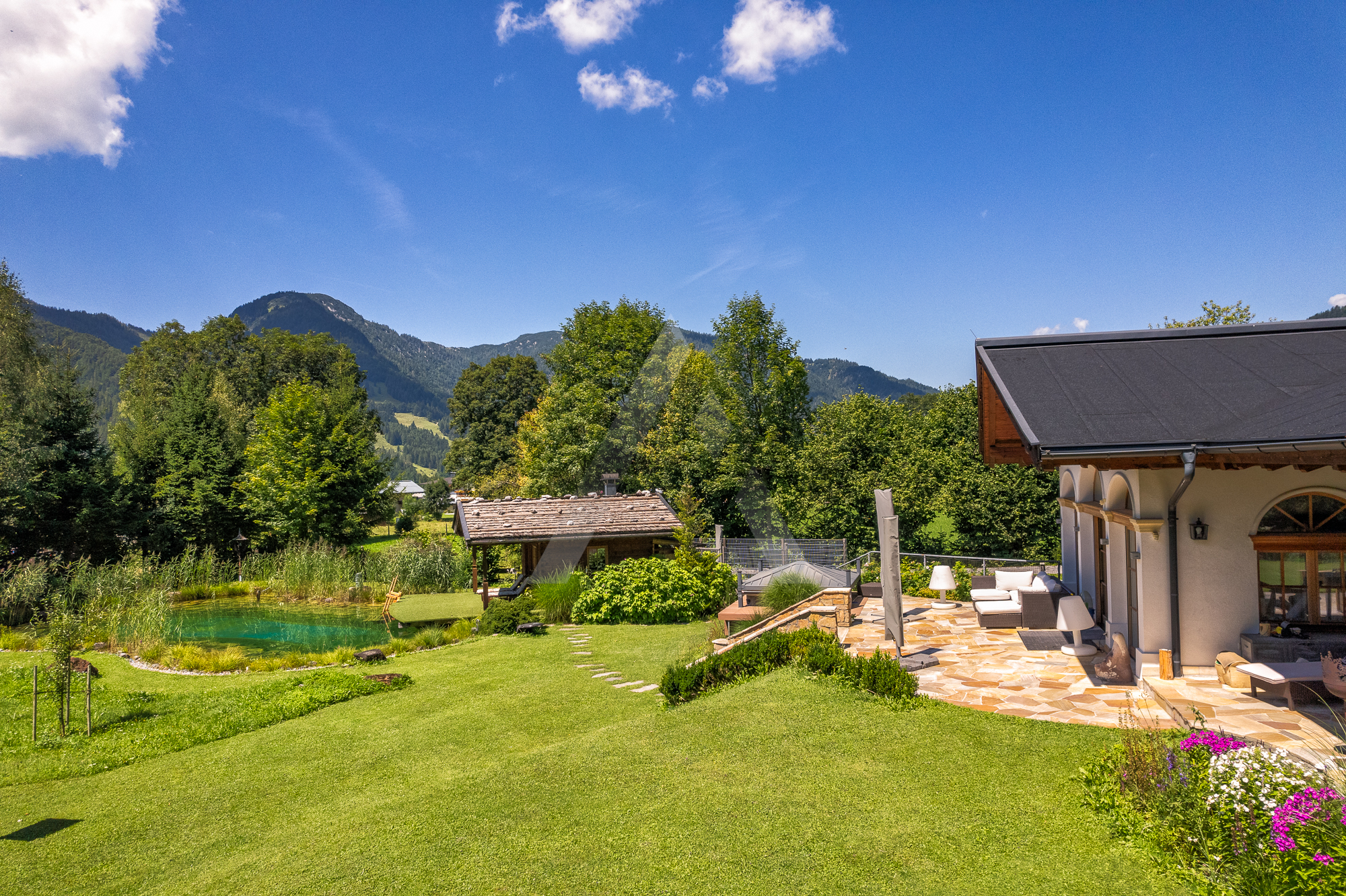 In einer Sackgasse gelegen erreichen Sie dieses Anwesen über die private Zufahrt. Schon beim Betreten des Grundstücks erkennen Sie die Großzügigkeit dieser Liegenschaft, welche aus einem Haupthaus mit großem Carport, einem Gerätehaus, einem Radkeller bzw. einer Werkstatt, einer Grillhütte und aus einem gemütlichen Poolhaus besteht. Eines der Highlights ist der überdimensionale Schwimmteich, von welchem man beim Schwimmen einen traumhaften Blick auf die umliegende Bergwelt genießen kann.