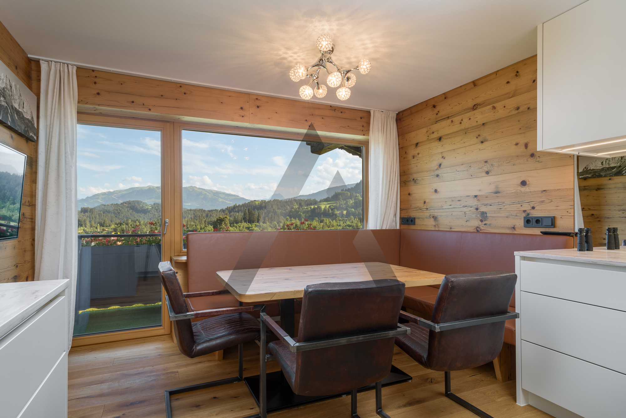 Diese traumhaft gelegene Dachgeschosswohnung befindet sich in einer atemberaubenden Lage von Going: sonnig, ruhig, in einer Sackgasse, umgeben von Wiesen und mit traumhaften Ausblick.