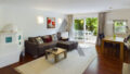 Die Gartenwohnung gliedert sich in einen offen gestalteten Wohn-/ Essbereich mit Einbauküche, Kachelofen, und Zugang zur Terrasse, sowie zwei Schlafzimmer, ein Badezimmer und einen Abstellraum.