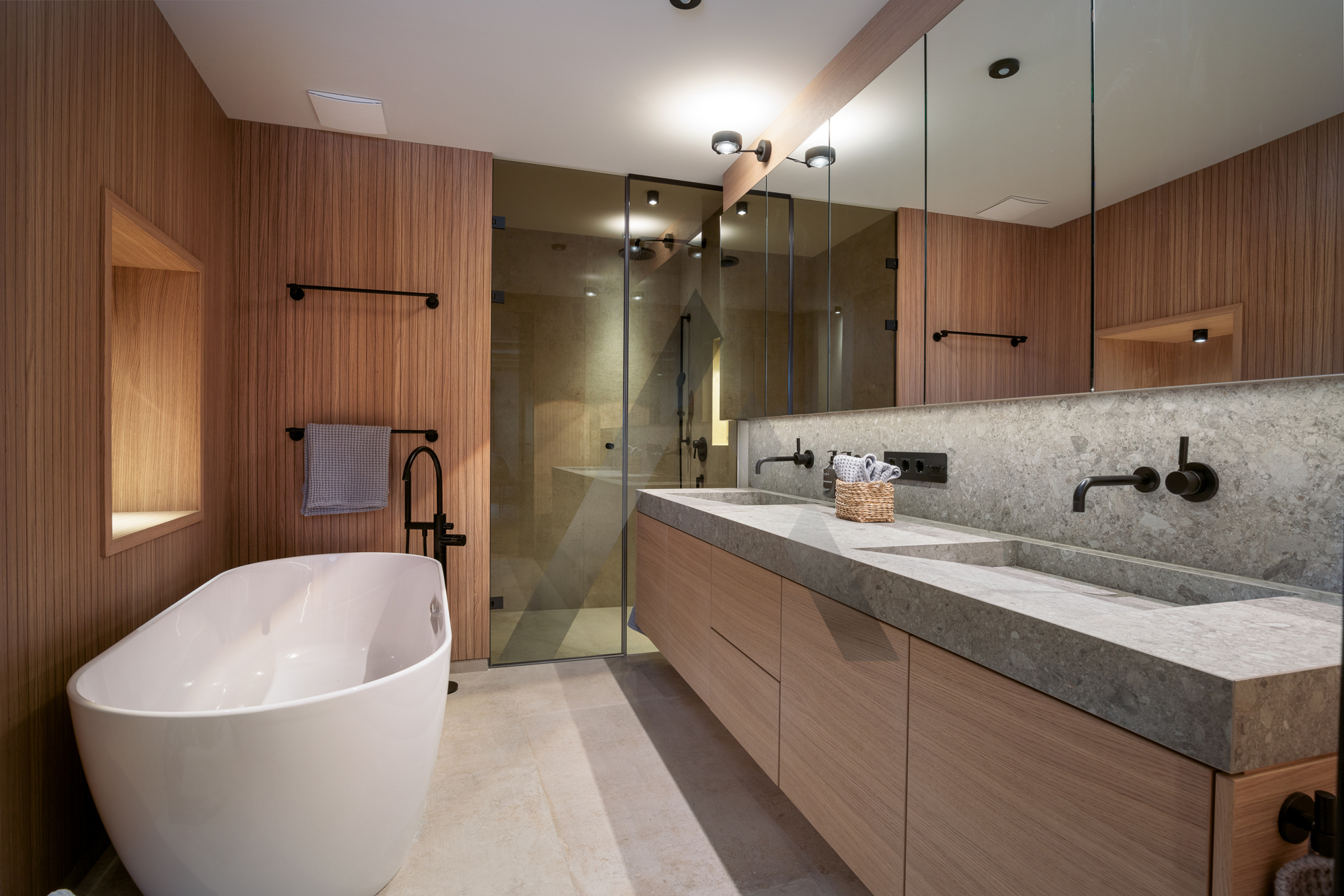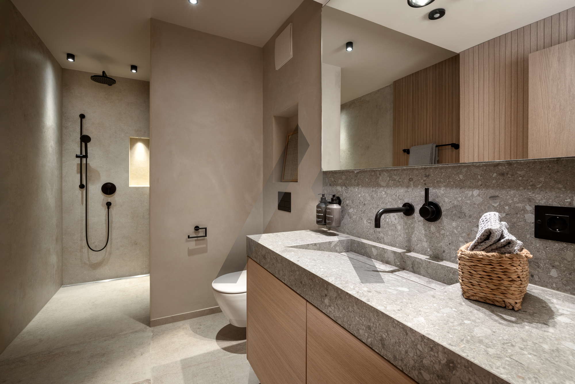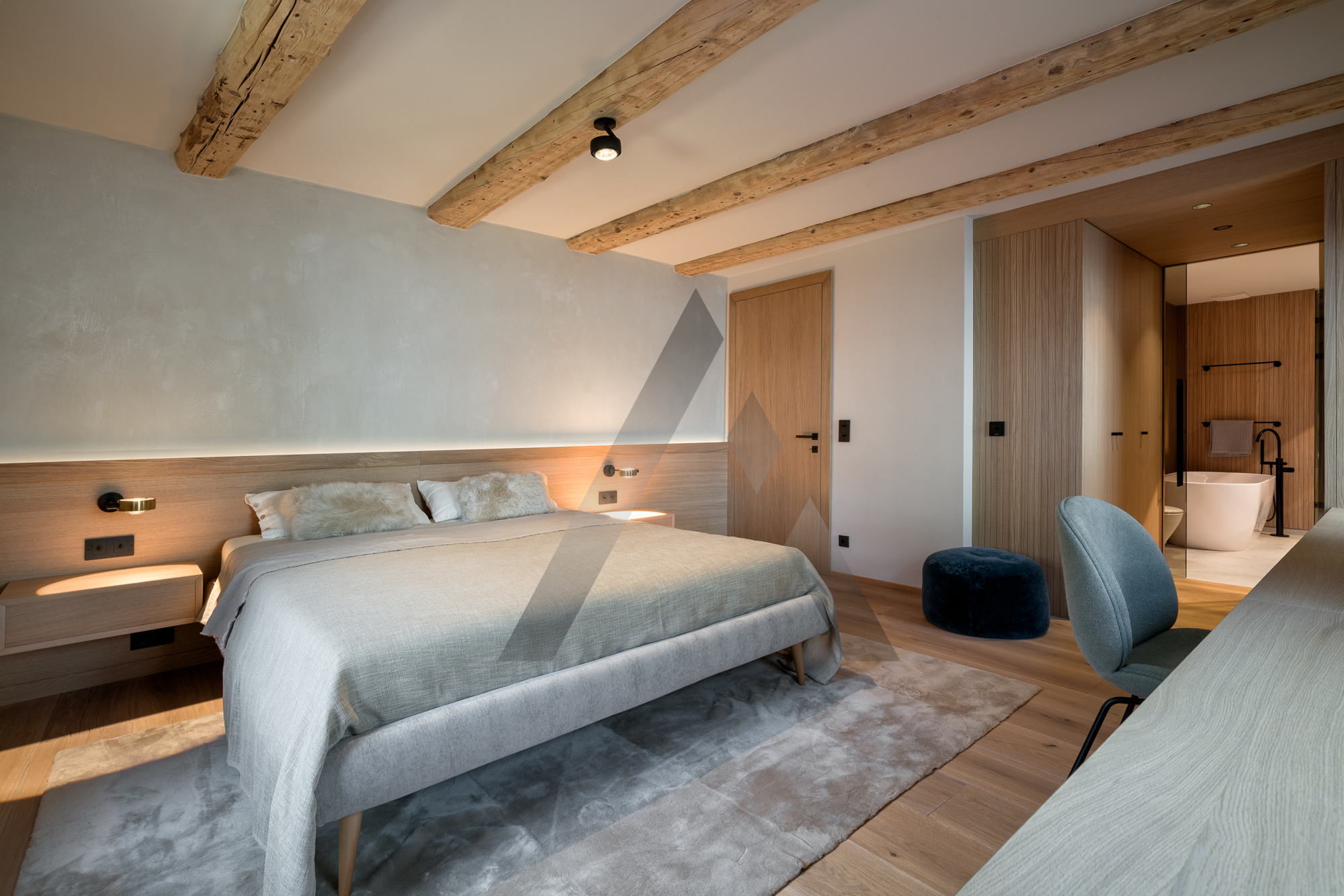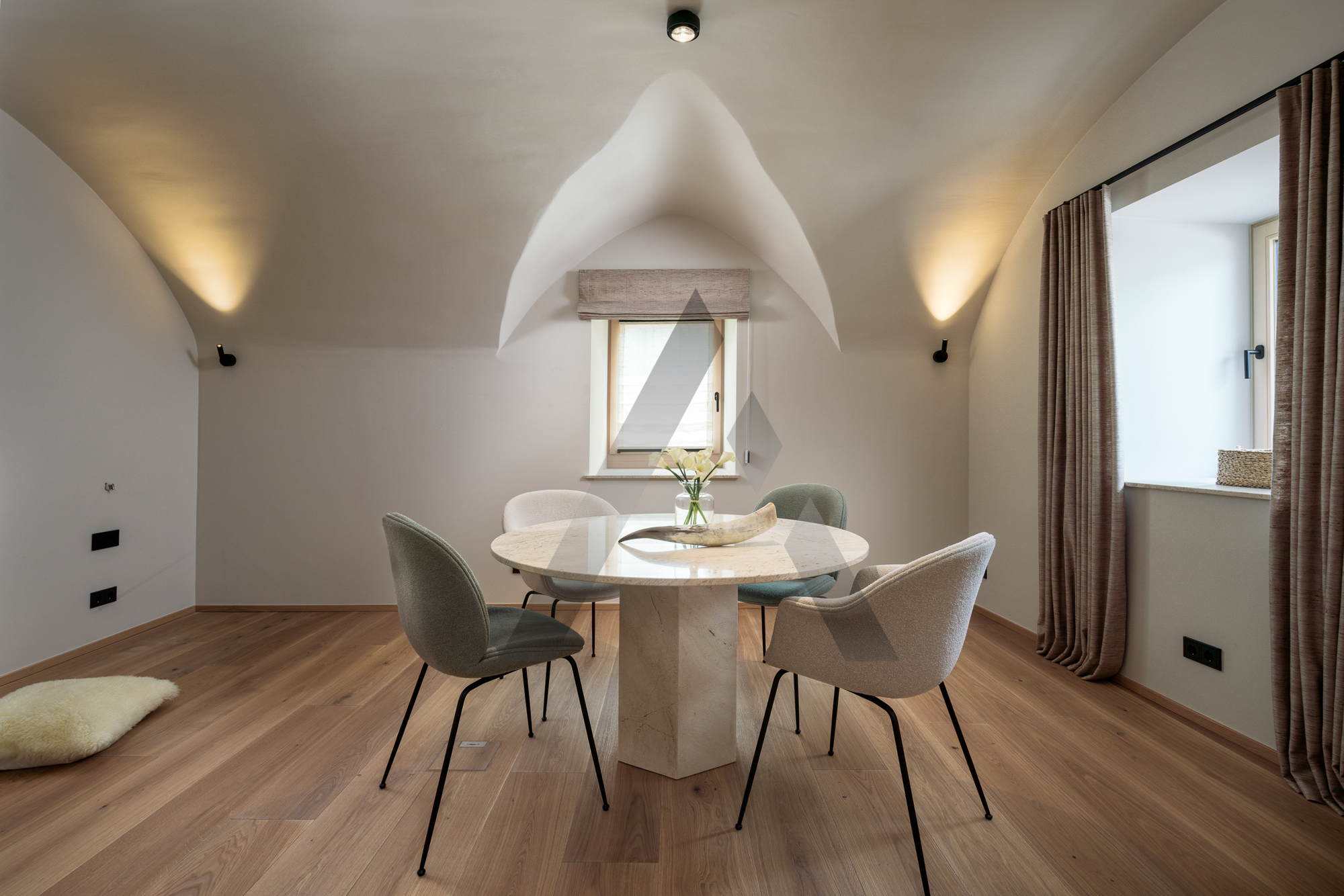 Zudem verfügt die Wohnung über einen Masterbereich mit Bad en Suite und Ankleidebereich, ein Gewölbezimmer, welches als Gästezimmer oder Wohnbereich genutzt werden kann und ein Gästebad.