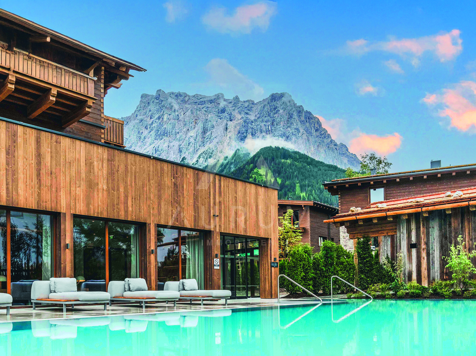 Das Bergresort Zugspitze bietet erstklassige Annehmlichkeiten wie einen großzügigen Wellnessbereich mit verschiedenen Saunen, beheiztem Outdoor-Pool und Fitnessraum – ein Ort, an dem Entspannung und alpine Lebensqualität im Mittelpunkt stehen. -