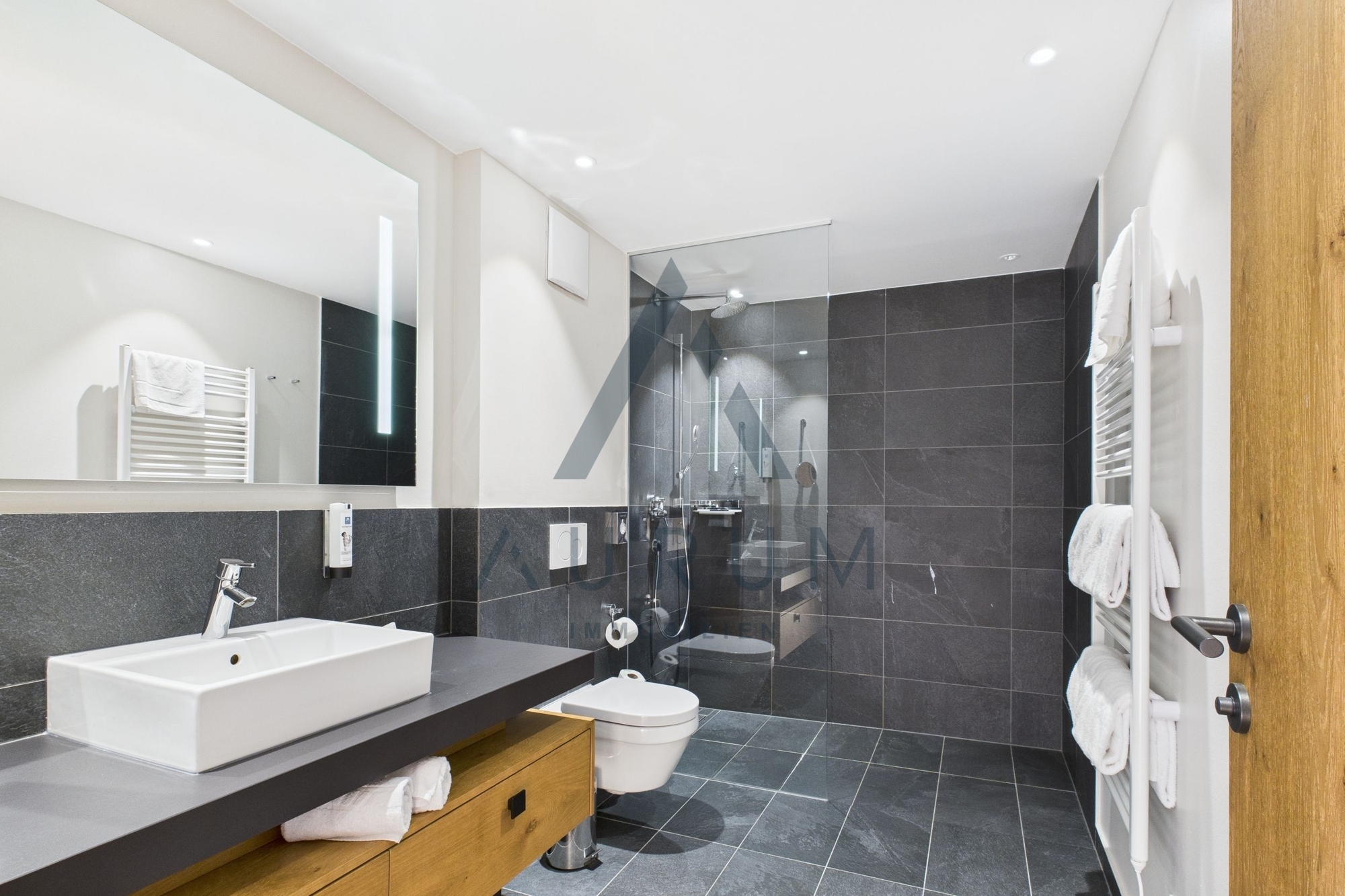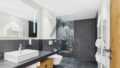 – Badezimmer mit Feinsteinzeug, WC und Dusche