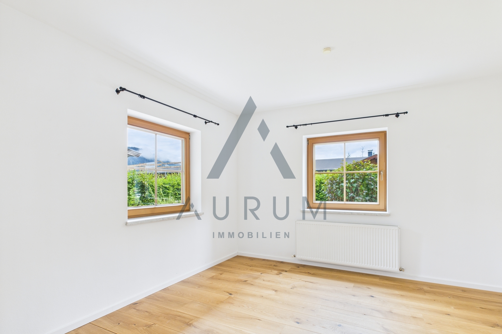 Die Wohneinheit im Obergeschoss verfügt über zwei Schlafzimmer sowie einen etwas kompakteren Wohnbereich. Auch hier sind Küche und Badezimmer vorhanden. Eine Anpassung der Raumaufteilung – etwa durch den Einbau einer leichten Trennwand in Holzriegelbauweise – ist problemlos möglich, je nach gewünschter Nutzung als Einzel- oder Mehrfamilieneinheit.