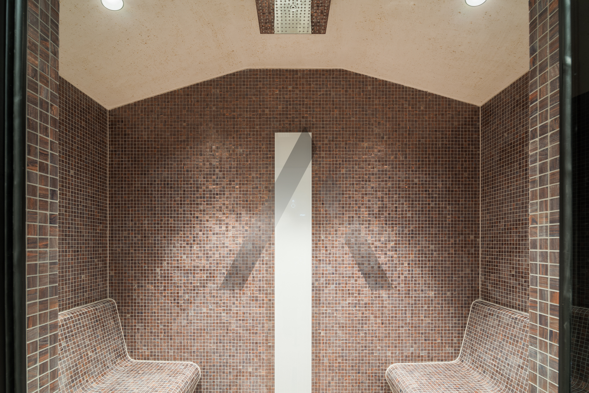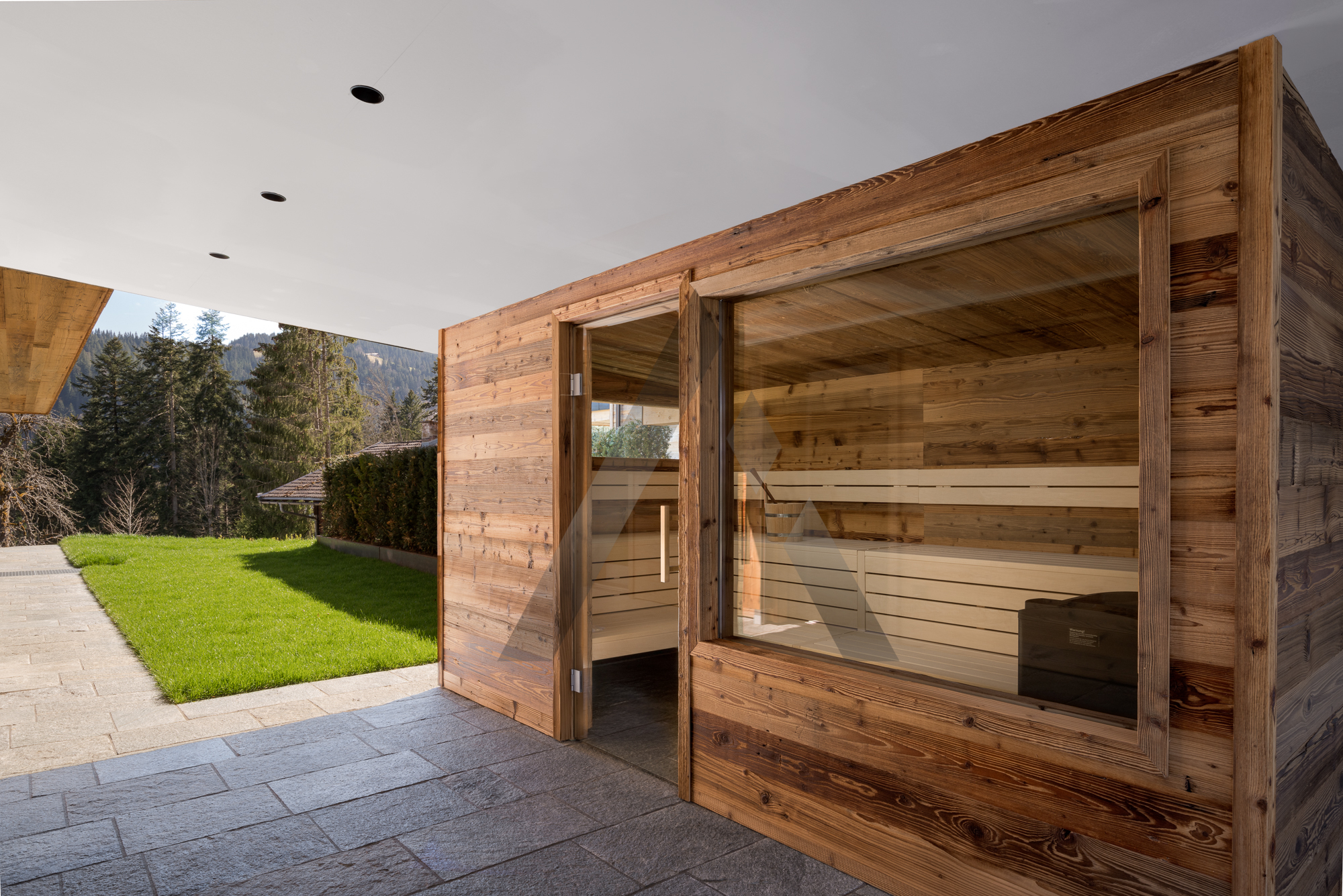 Im Erdgeschoss befinden sich weitere 4 Schlafzimmer mit je Bad en suite. Über die Terrassenzugänge erreichen Sie den edel gestalteten Außenwellnessbereich mit Sauna & Dampfdusche.