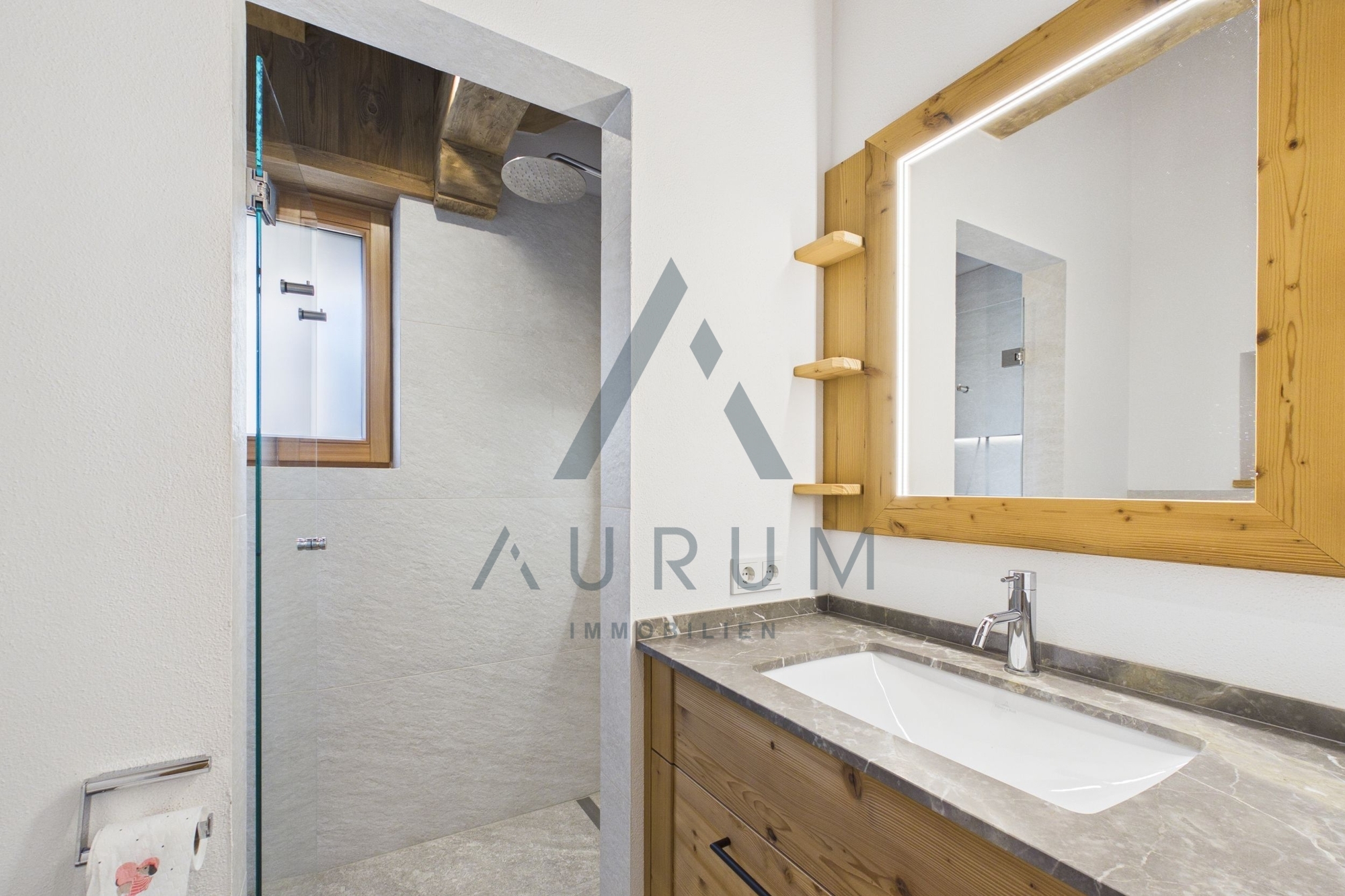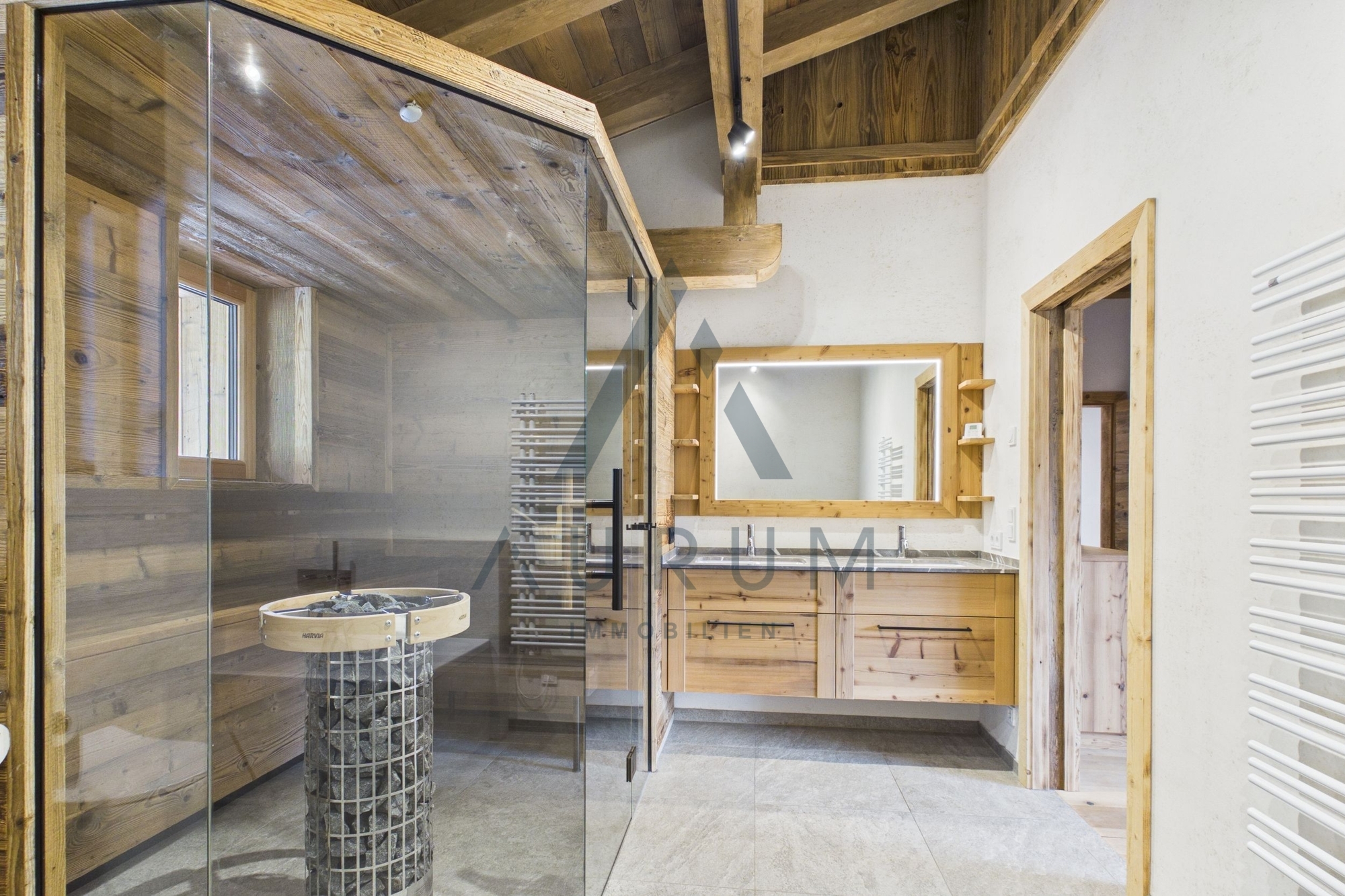 Die Wohnung verfügt über drei Schlafzimmer, darunter ein stilvolles Master-Schlafzimmer mit Einbauschränken, Altholzwand, Bad en suite sowie privater Sauna. Ein weiteres Badezimmer dient gleichzeitig als Gäste-WC und als Bad für die beiden zusätzlichen Schlafzimmer.