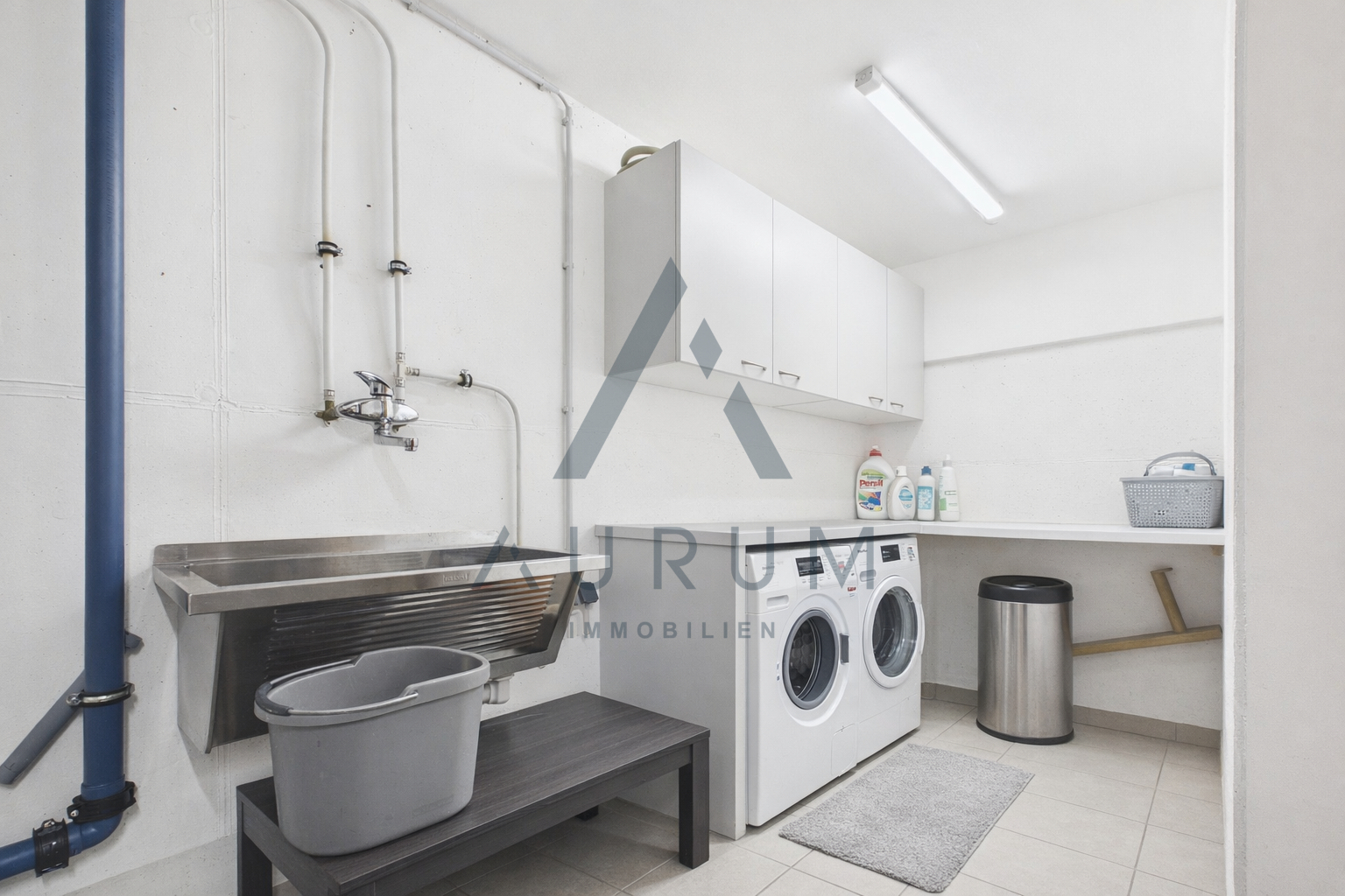 Praktischerweise ist das Haus unterkellert, was zusätzlichen Stauraum gewährleistet. Von der Tiefgarage aus gelangen Sie direkt über das Untergeschoss in das Haus. -