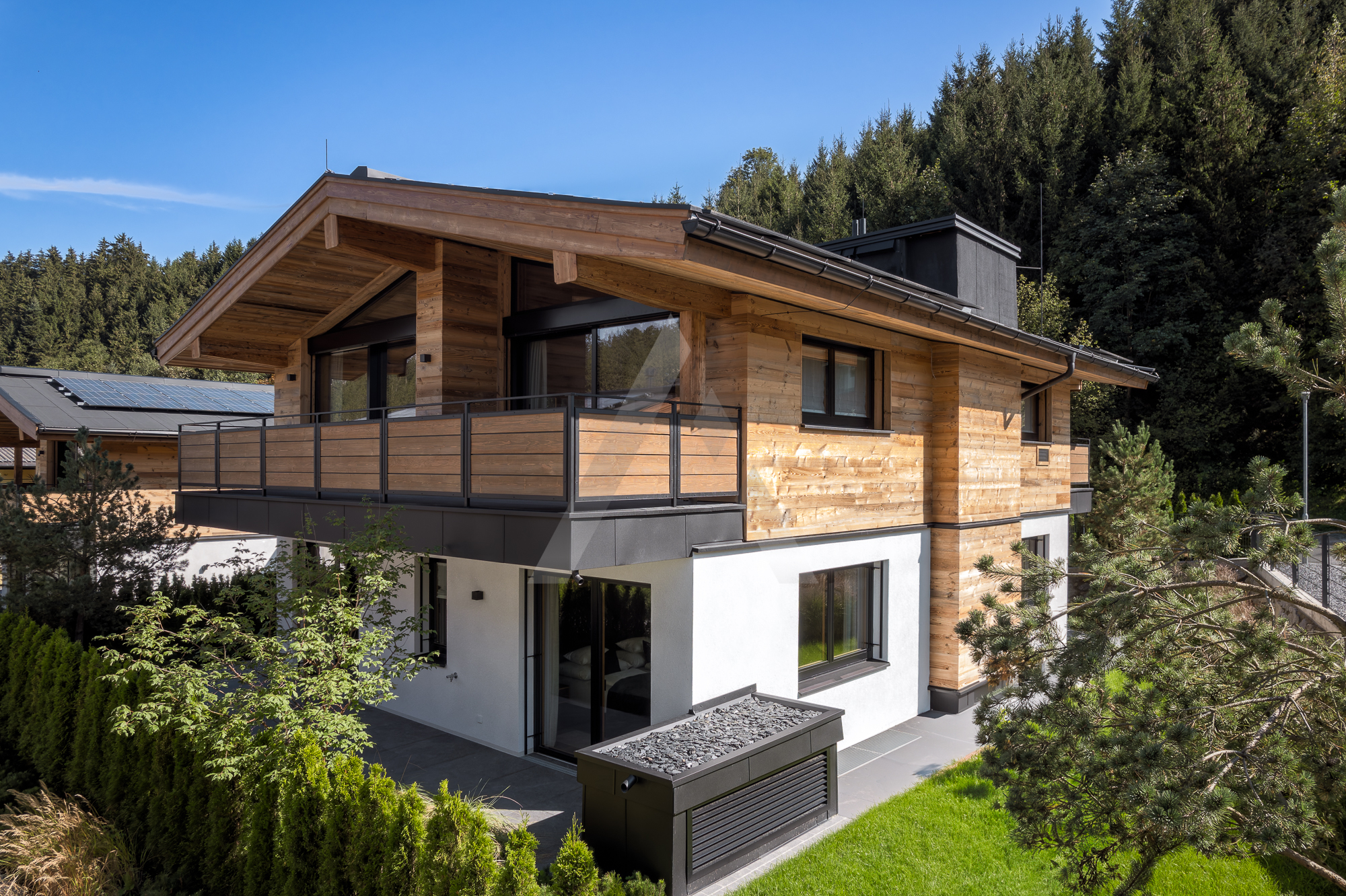 Am Stadtrand von Kitzbühel in südseitiger Lage entstand am Fuße des Kitzbüheler Horns dieses Neubauchalet mit Blick auf den Hahnenkamm und Wilden Kaiser.