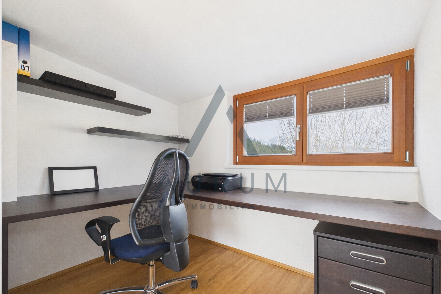 Das Dachgeschoss bietet einen weiteren, großzügigen Raum mit ca. 27 m², der sich ideal als Schlafzimmer, Wohnzimmer oder Arbeitsbereich nutzen lässt. Auch hier steht ein eigenes Badezimmer zur Verfügung. Ein Balkon mit wunderschönem Blick auf den Hahnenkamm rundet dieses Geschoss ab.