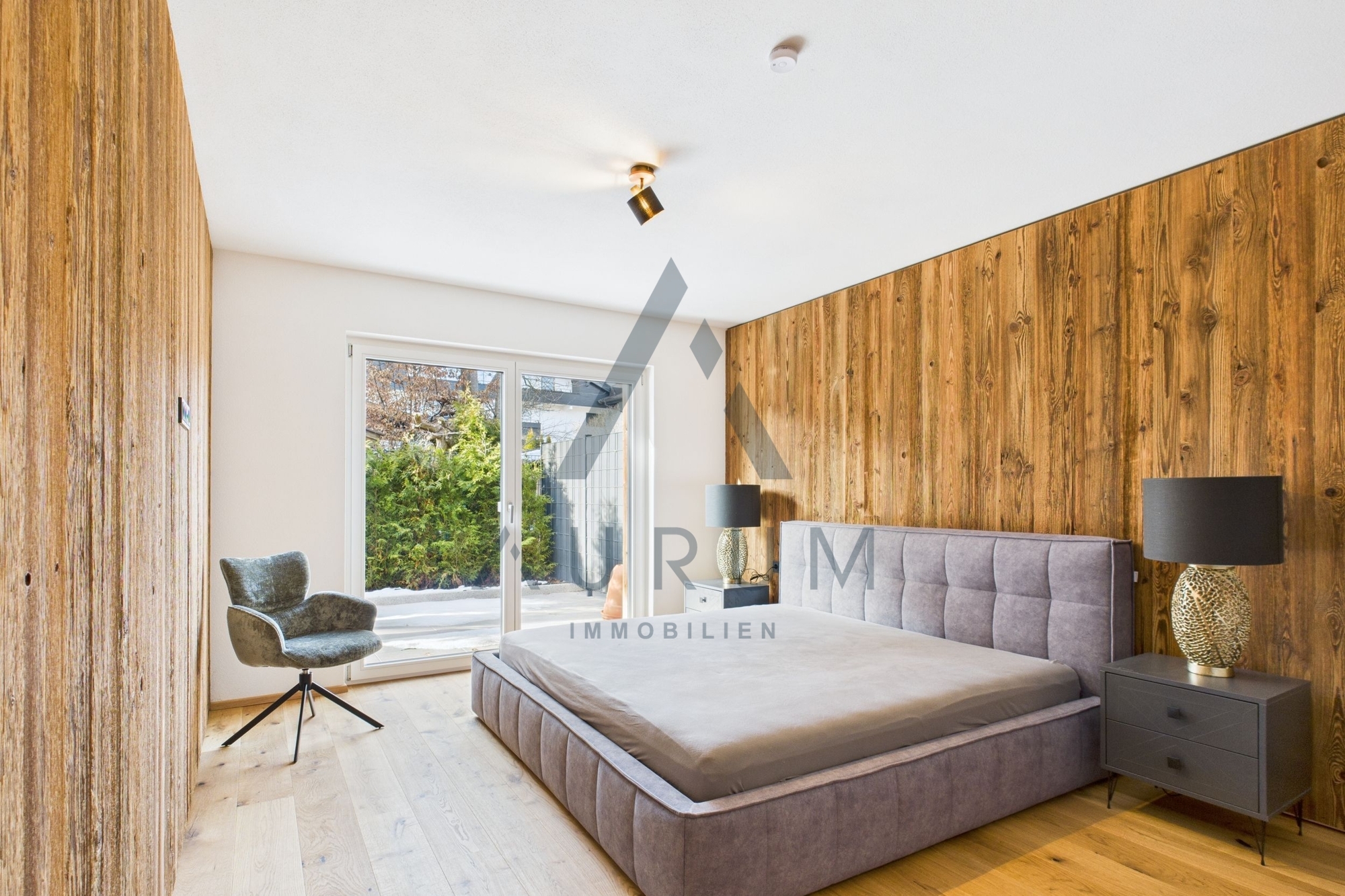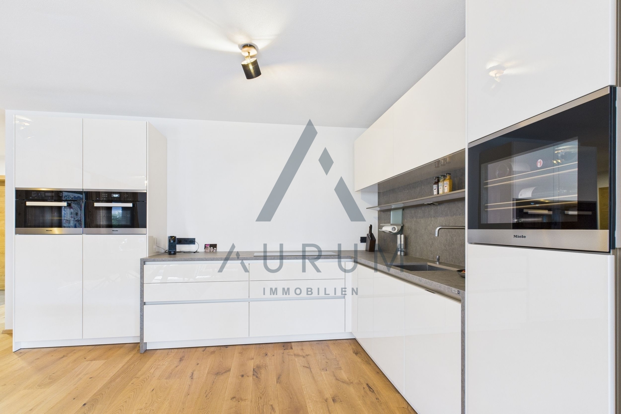 Die Wohnung überzeugt durch ihre durchdachte Raumaufteilung und eine sonnige Südwest-Ausrichtung. Über den Eingangsbereich mit Garderobe (hochwertige Einbauschränke) gelangen Sie in den lichtdurchfluteten, offen gestalteten Wohn- und Essbereich. Die großzügige Simatic-Küche mit hochwertigen Miele-Geräten ist im Kaufpreis inkludiert und fügt sich elegant in das moderne Wohnkonzept ein. Von hier aus gelangen Sie direkt auf die Terrasse und in den nach Südwesten ausgerichteten Garten.