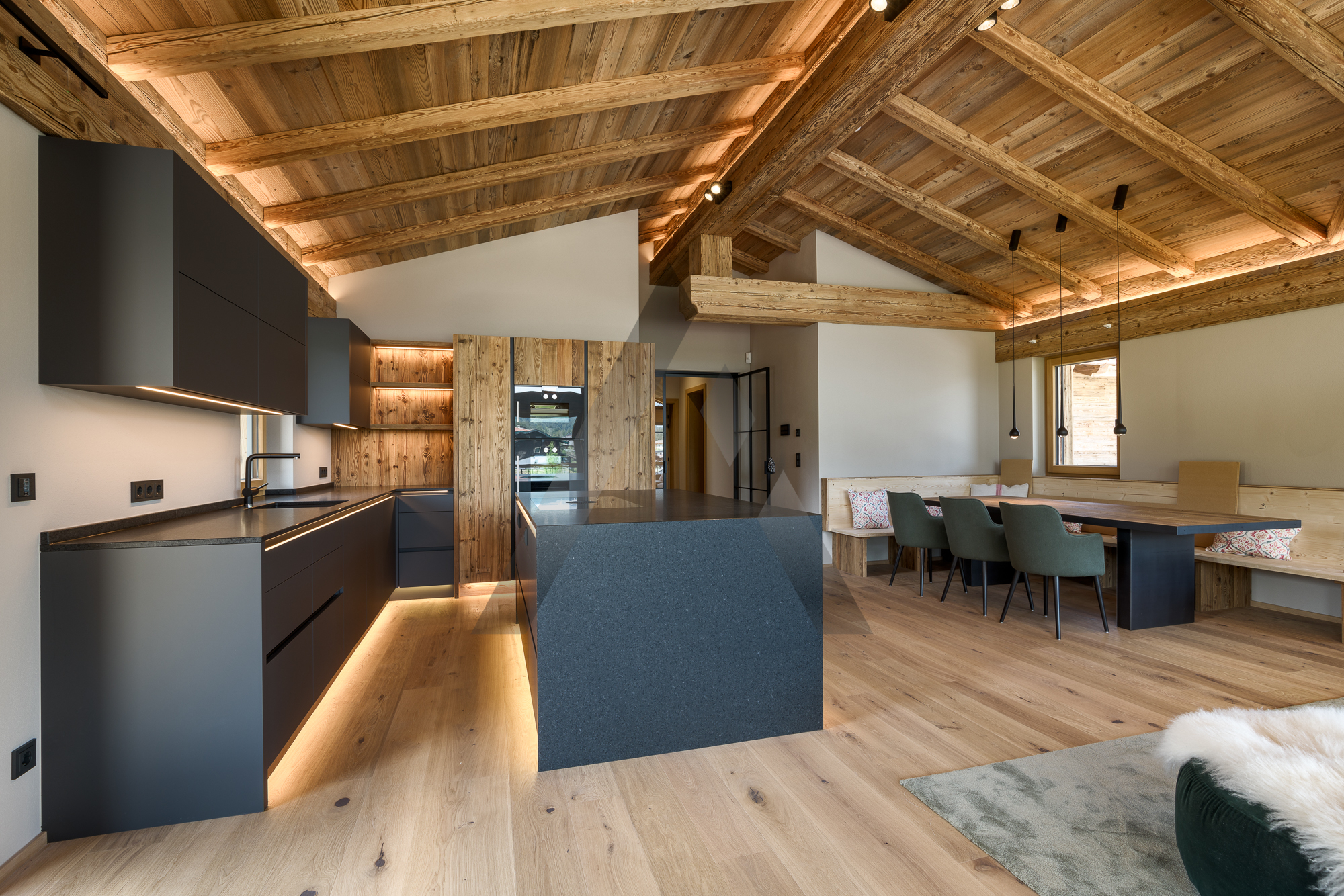 Im traditionellen Tiroler Landhausstil jedoch mit modernster und hochwertigster Ausstattung entstand diese Chalet-Einheit in einem traumhaften Ensemble mit sechs Einheiten in ruhiger und leicht erhöhter Ausblicklage von Kirchberg in Tirol. Diese Einheit bietet einen besonders schönen Blick auf Kirchberg und das Kitzbüheler Horn.