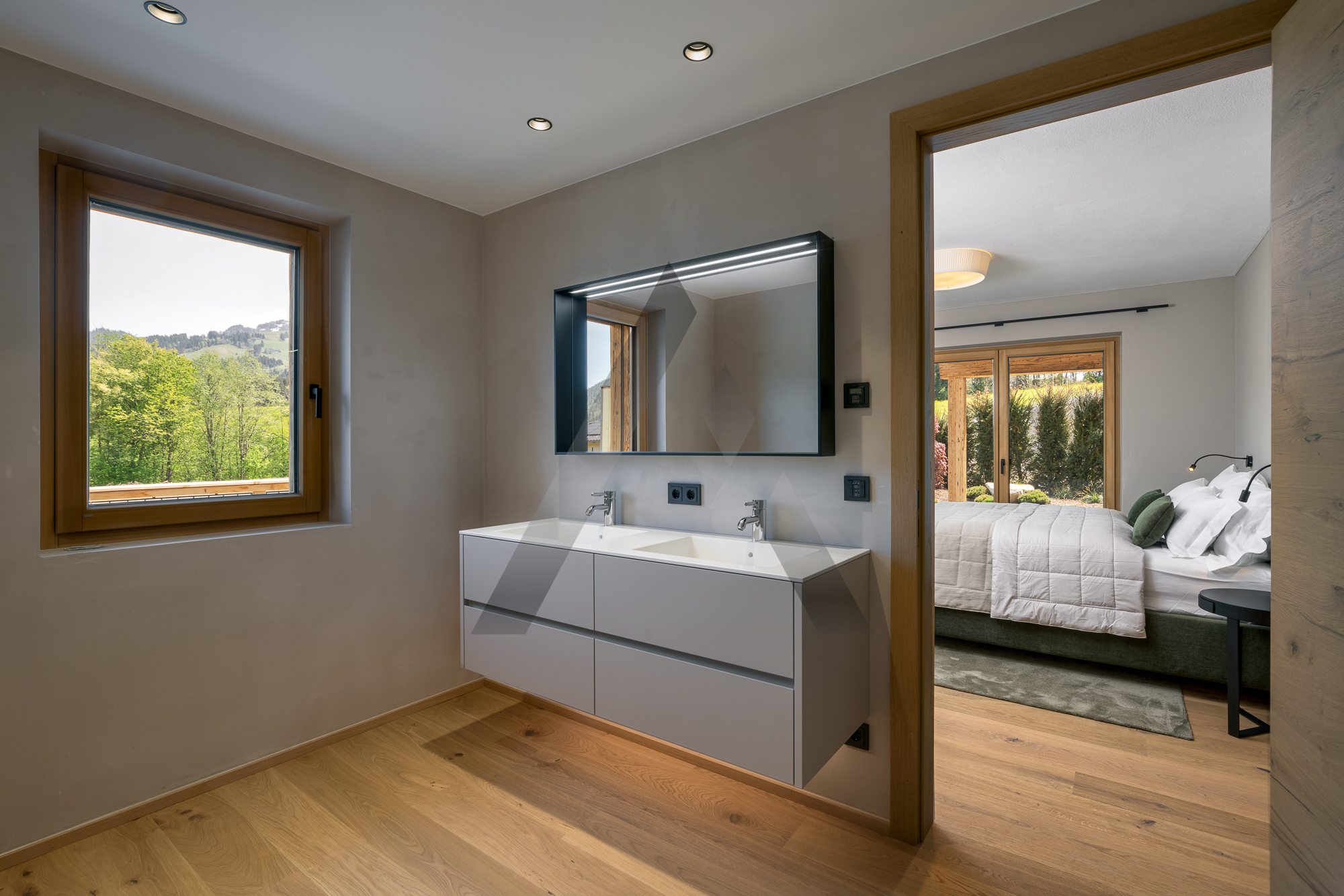 Die Fertigstellung erfolgte im Frühjahr 2024. Das Chalet wird Großteils bereits komplett möbliert übergeben (lediglich Gästezimmer aufgrund individueller Bedürfnisse ohne Möblierung – Einbauschränke und Beleuchtung jedoch bereits inkludiert).