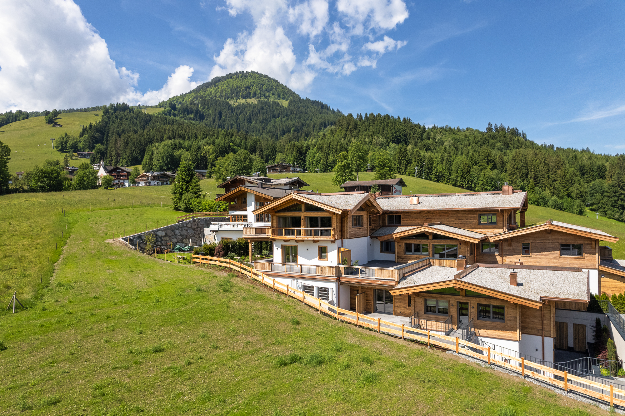 Direkt an der Schiwiese von Kirchberg gelegen, entstanden luxuriöse Chalets in leicht erhöhter Lage und mit herrlichem Bergblick von der hohen Salve über das Kitzbüheler Horn, bis zum Pengelstein. Das Zentrum erreichen Sie fußläufig in wenigen Minuten.