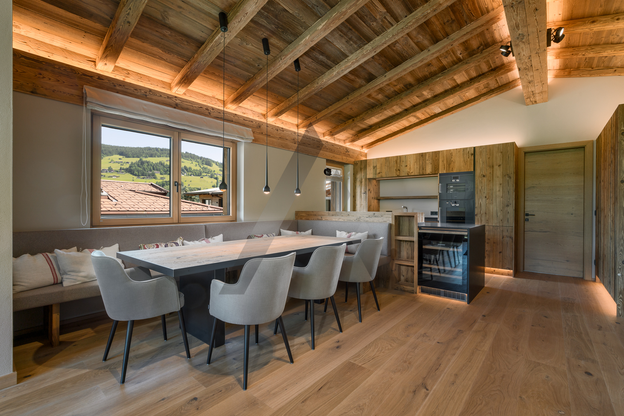 Im traditionellen Tiroler Landhausstil jedoch mit modernster und hochwertigster Ausstattung entstand diese Chalet-Einheit in einem traumhaften Ensemble mit sechs Einheiten in ruhiger und leicht erhöhter Ausblicklage von Kirchberg in Tirol. Diese Einheit bietet einen besonders schönen Panoramablick auf das Kitzbüheler Horn, den Hahnenkamm, Fleckalm, Maierl, Kirchberg, in das Brixental mit der Hohen Salve und auf den Gaisberg.