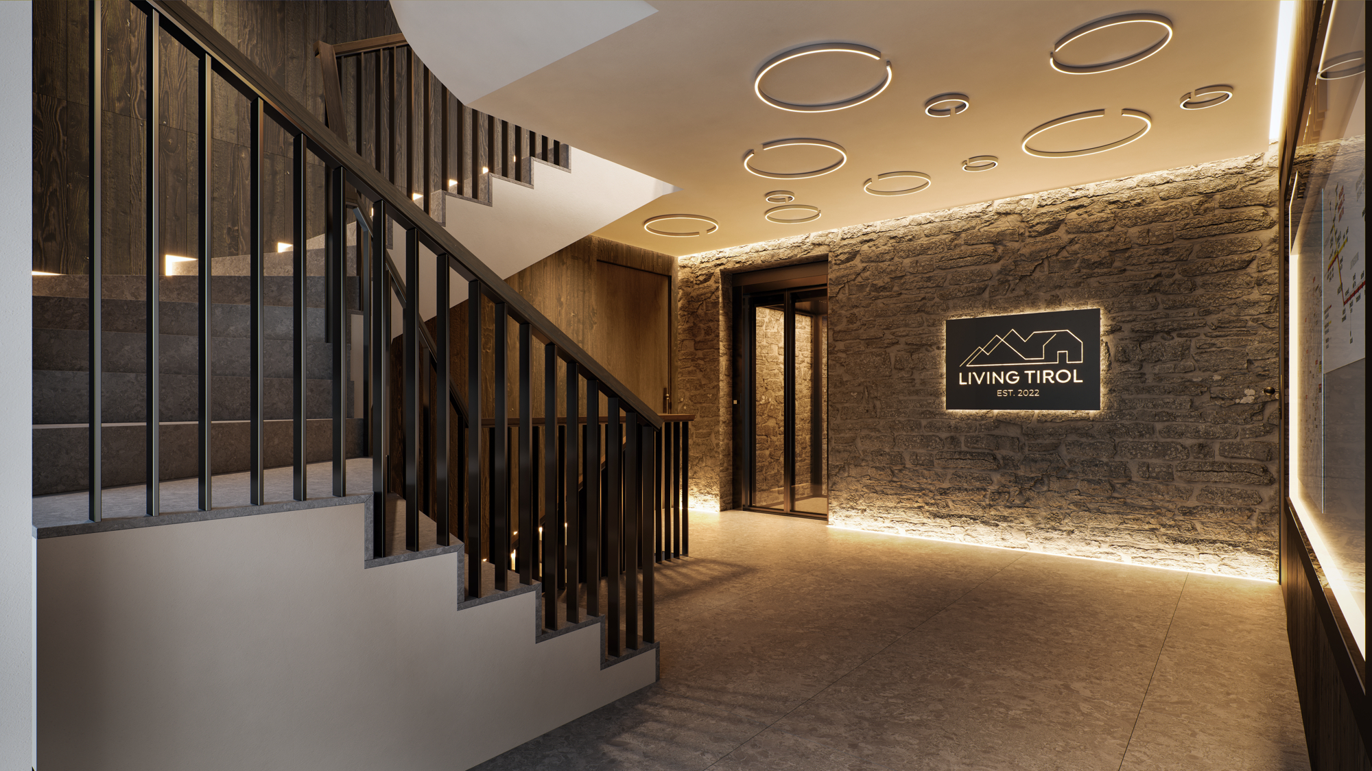 Schon beim Betreten des weitläufigen Eingangsbereichs offenbart sich der gehobene Anspruch des Hauses. Ein moderner Glasaufzug erschließt sämtliche Ebenen und gewährleistet einen bequemen Zugang zu allen Wohneinheiten. Das puristische, zeitgemäße Interieur wird durch erlesene Materialien, hochwertige Ausstattungsdetails und intelligent konzipierte Grundrisse geprägt.