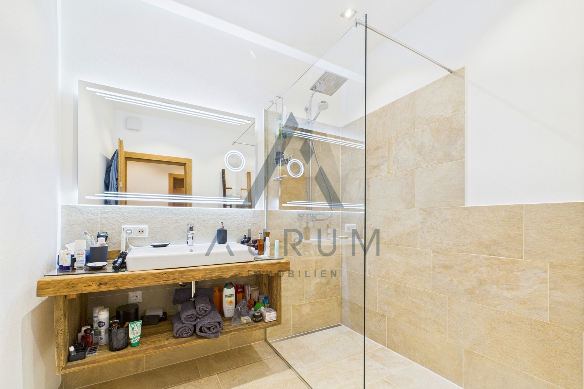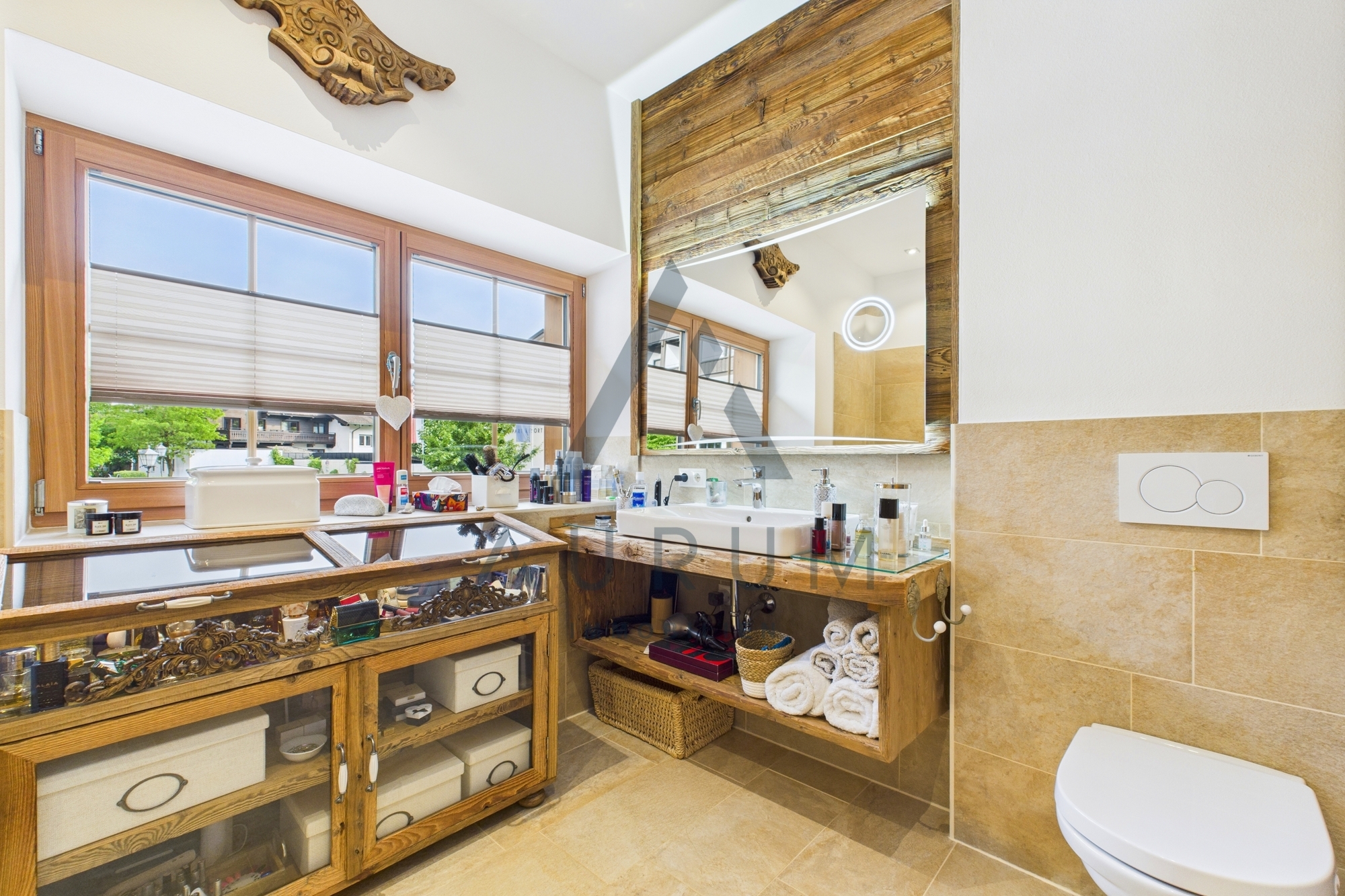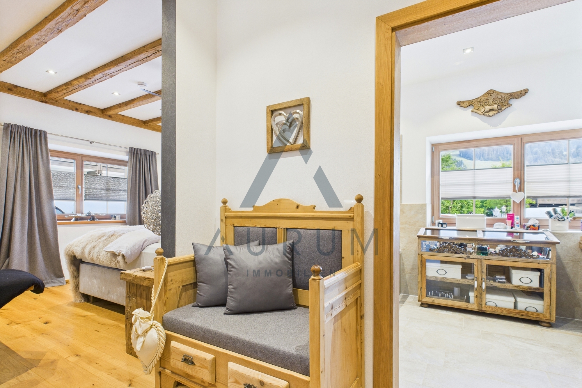 – Hochwertige Echtholz-Einbauten und maßgefertigte Möbel