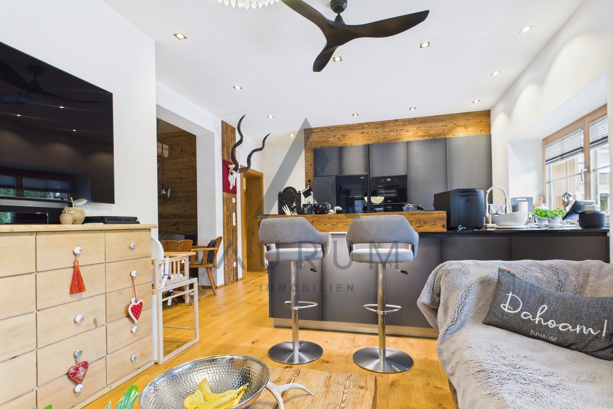 Der gepflegte Parkettboden befindet sich in neuwertigem Zustand. In jedem Raum sorgt ein integriertes Sonos-Soundsystem für ein exzellentes Klangerlebnis.