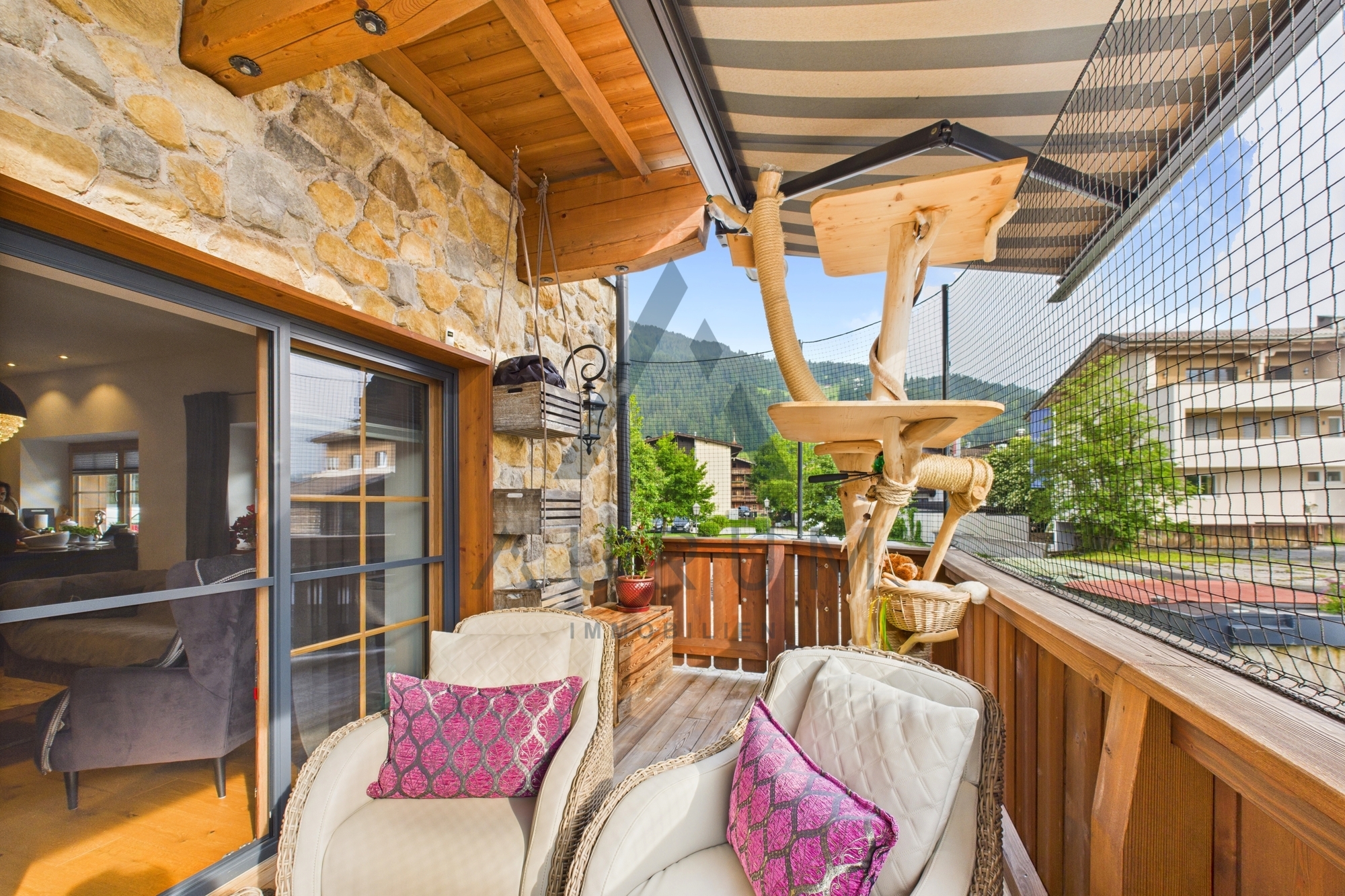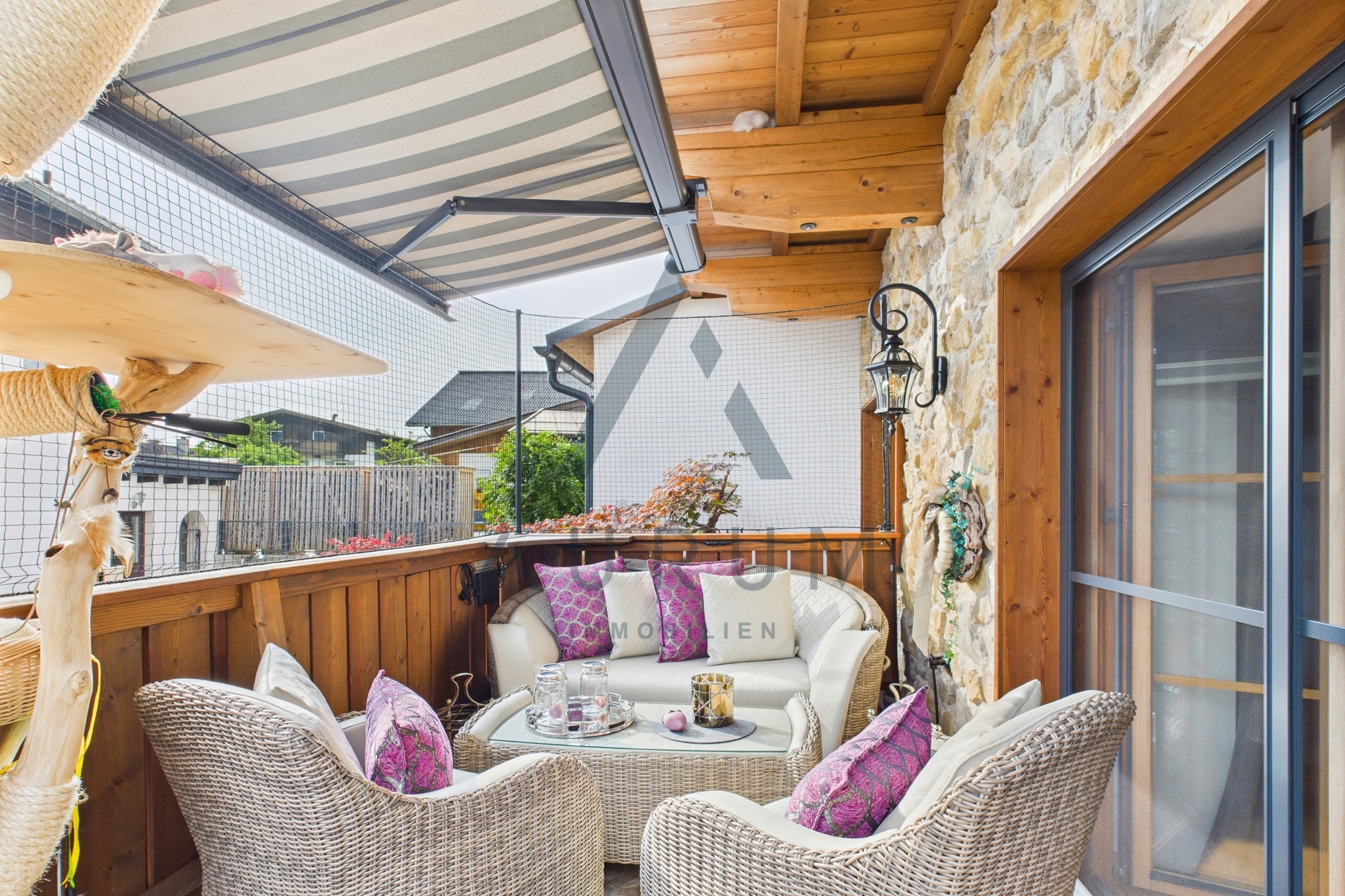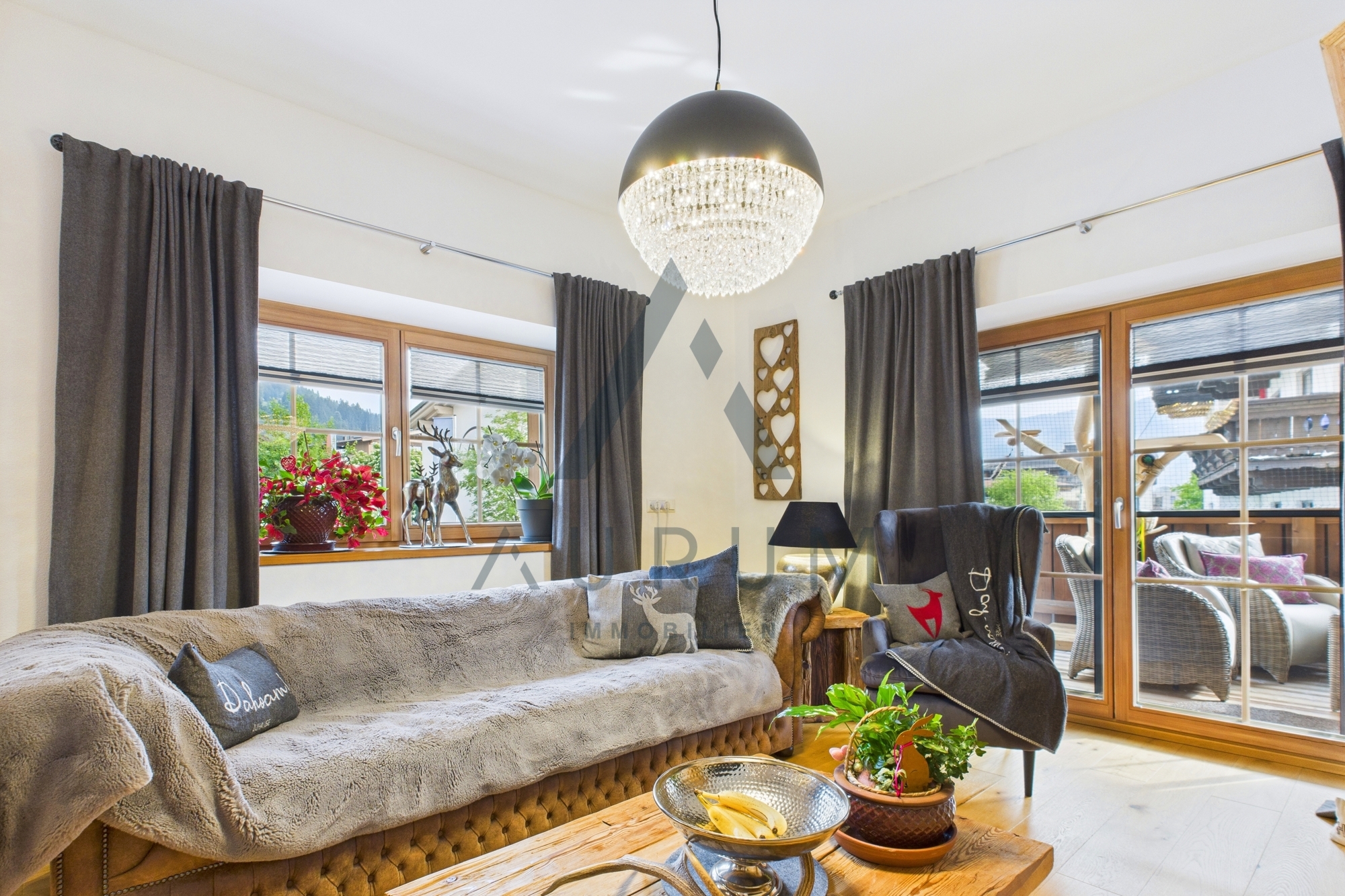 Die nach Südwesten ausgerichtete Terrasse mit ca. 9 m² lädt zum Entspannen ein und macht diese Wohnung zu einem echten Rückzugsort inmitten der Tiroler Bergwelt.