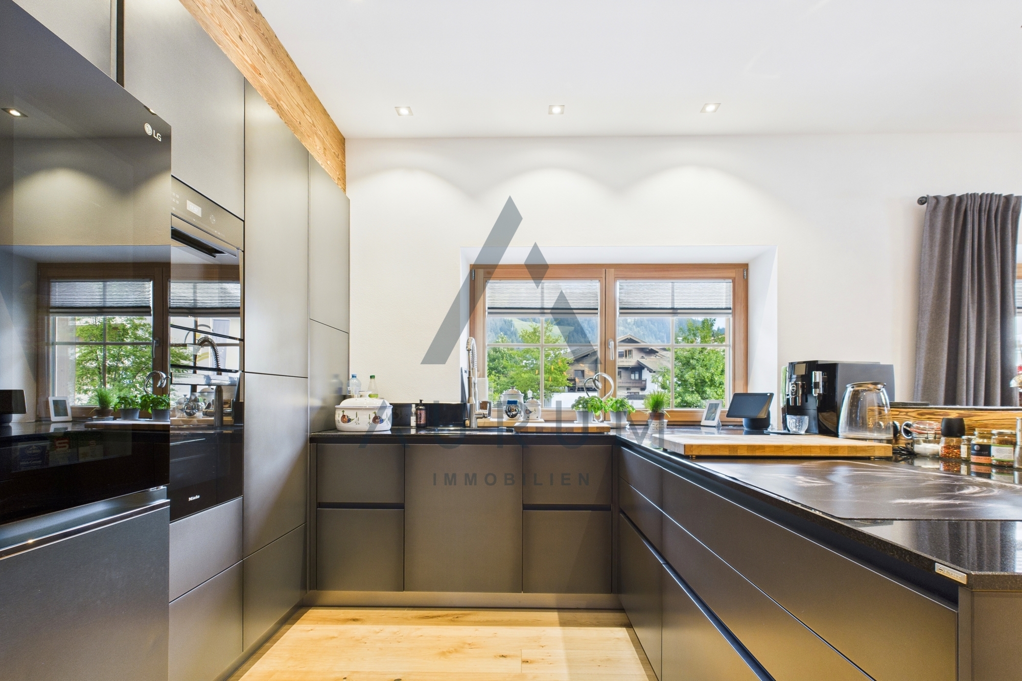 – Design-Einbauküche mit Geräten von Miele und Bora
