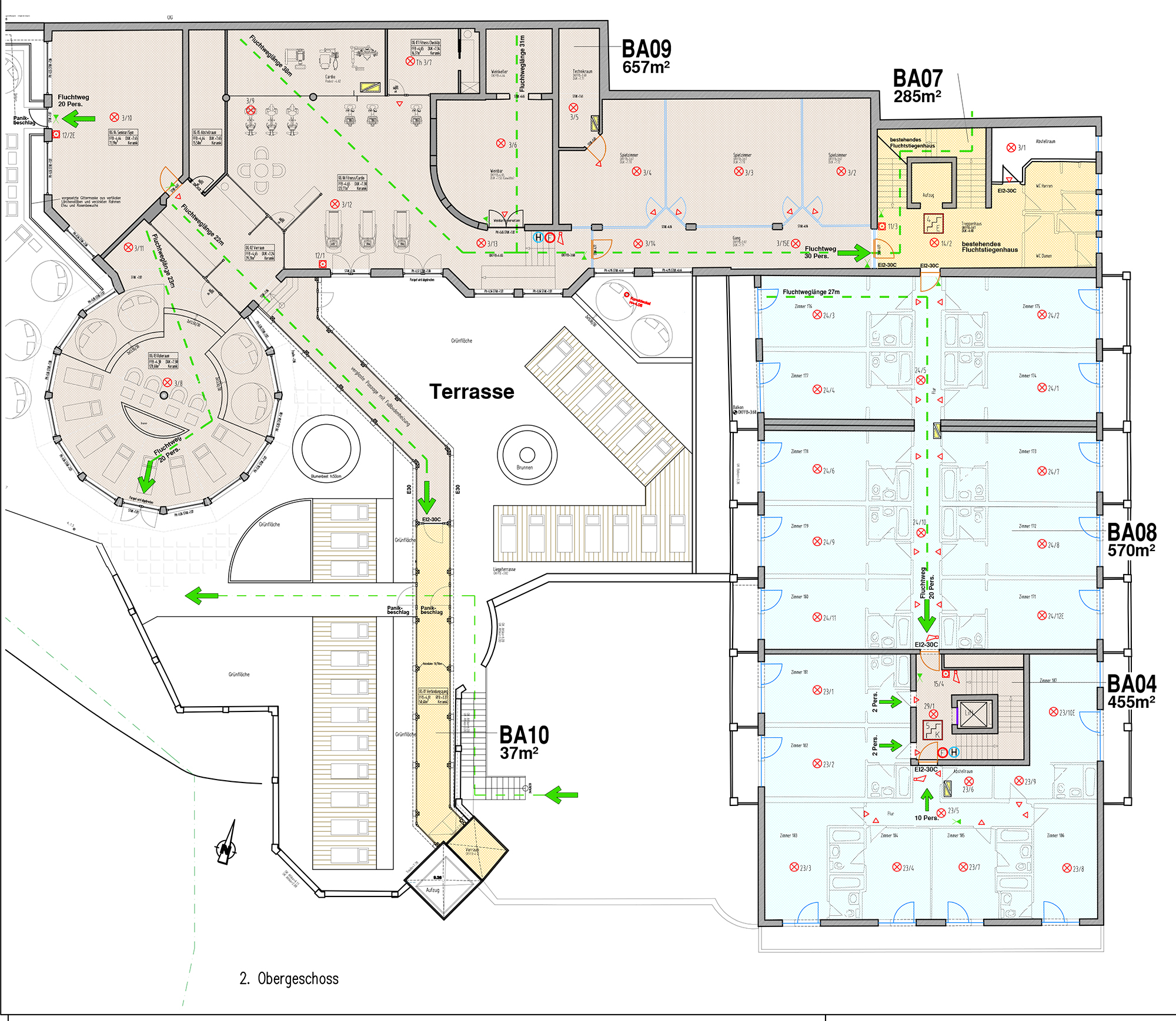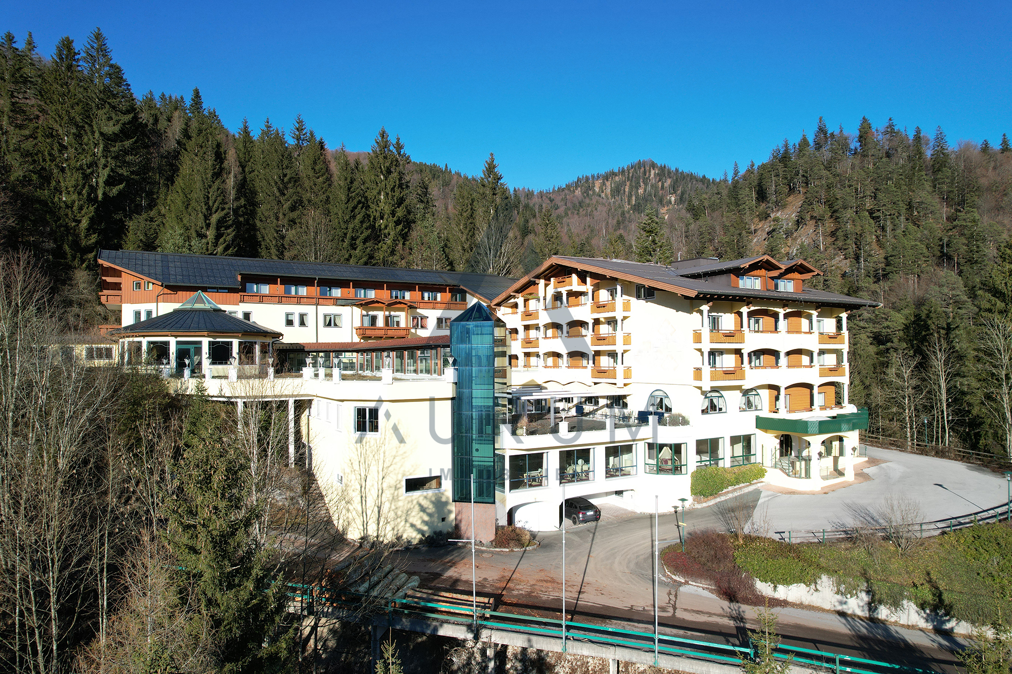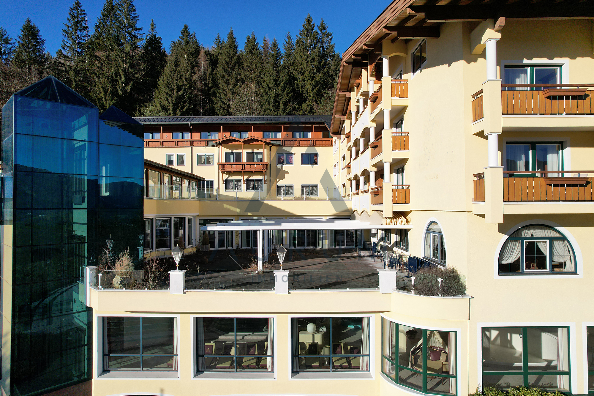 Die bestehende Hotelanlage verfügt über insgesamt 58 Zimmer und 4 Suiten. Ergänzt wird das Raumangebot durch einen großzügigen Restaurant- und Barbereich inklusive professionell ausgestatteter Küche, einen Wellnessbereich mit Hallenbad, einen separaten Beauty- und Fitnessbereich sowie eine Lobby mit Rezeption. Zusätzlich stehen umfangreiche Technik- und Lagerflächen zur Verfügung. Die Erschließung erfolgt über zwei getrennte Stiegenhäuser sowie insgesamt drei Aufzugsanlagen, was eine effiziente Erschließung und flexible Nutzung der einzelnen Ebenen ermöglicht.