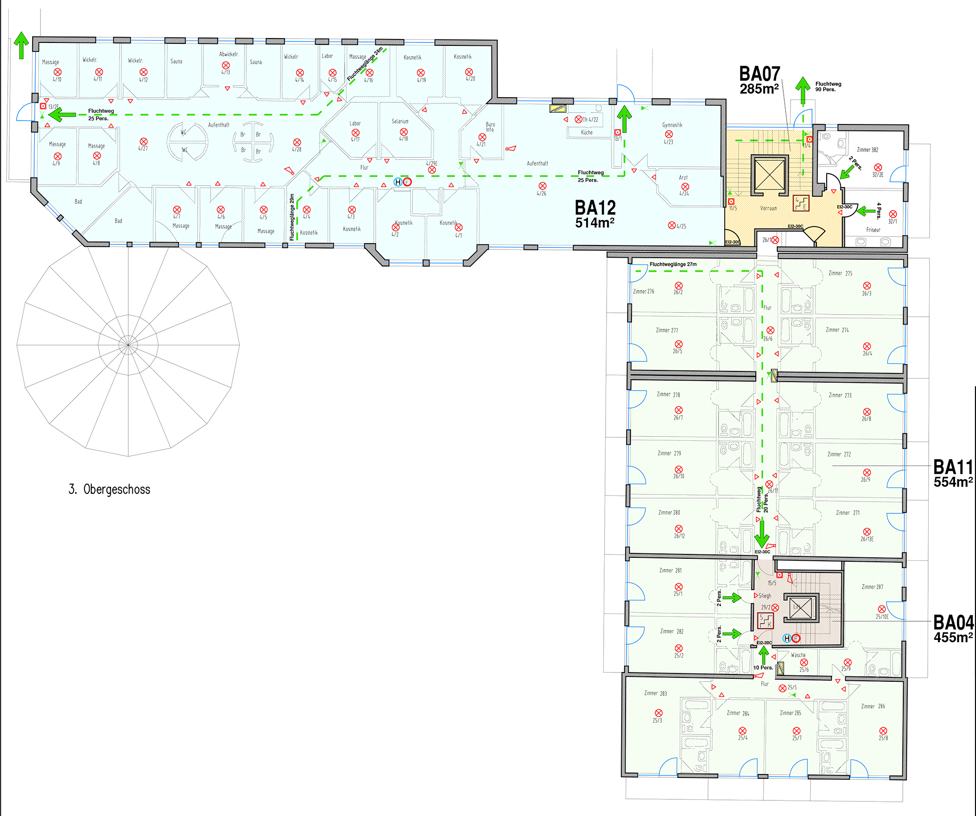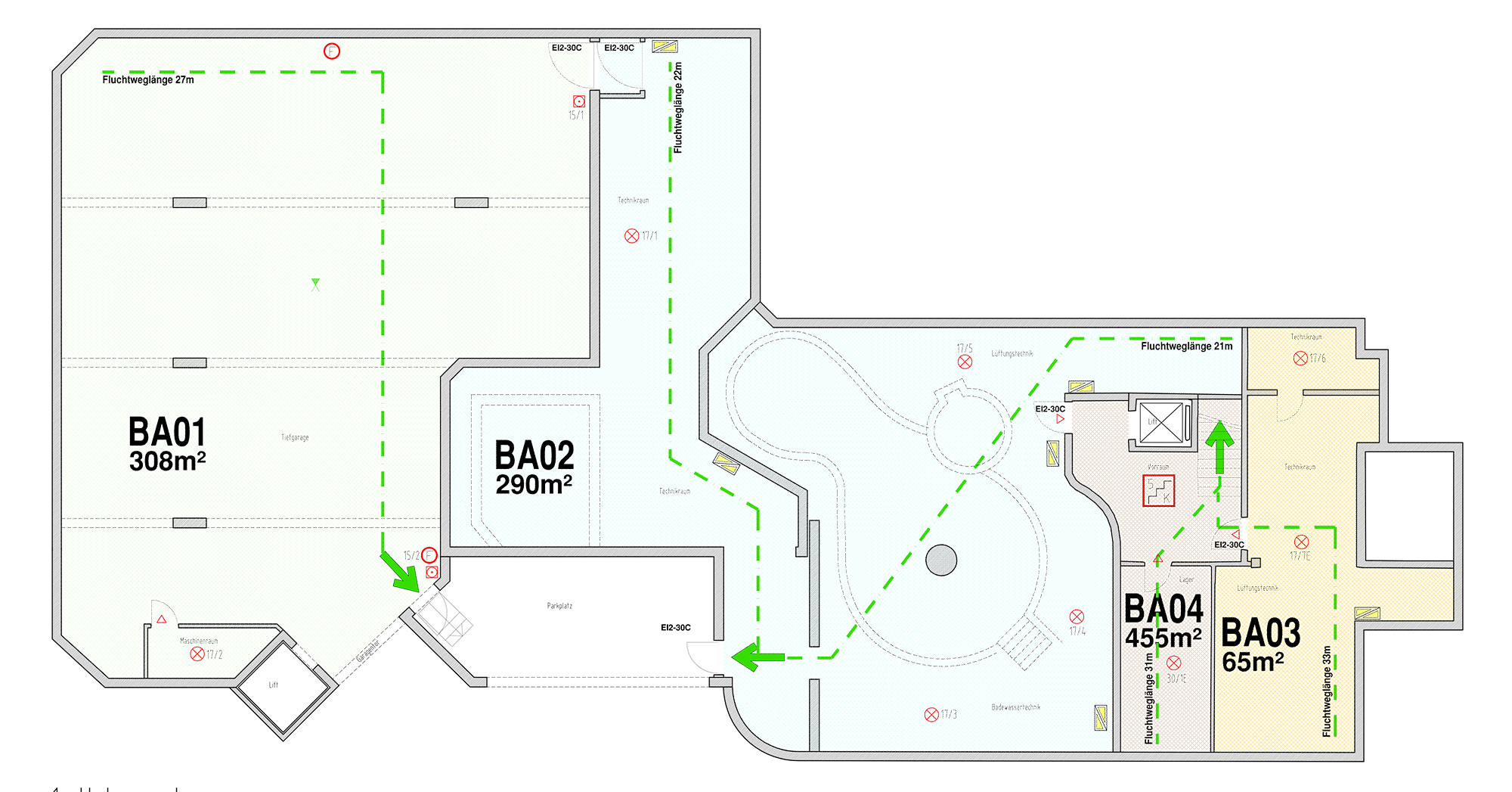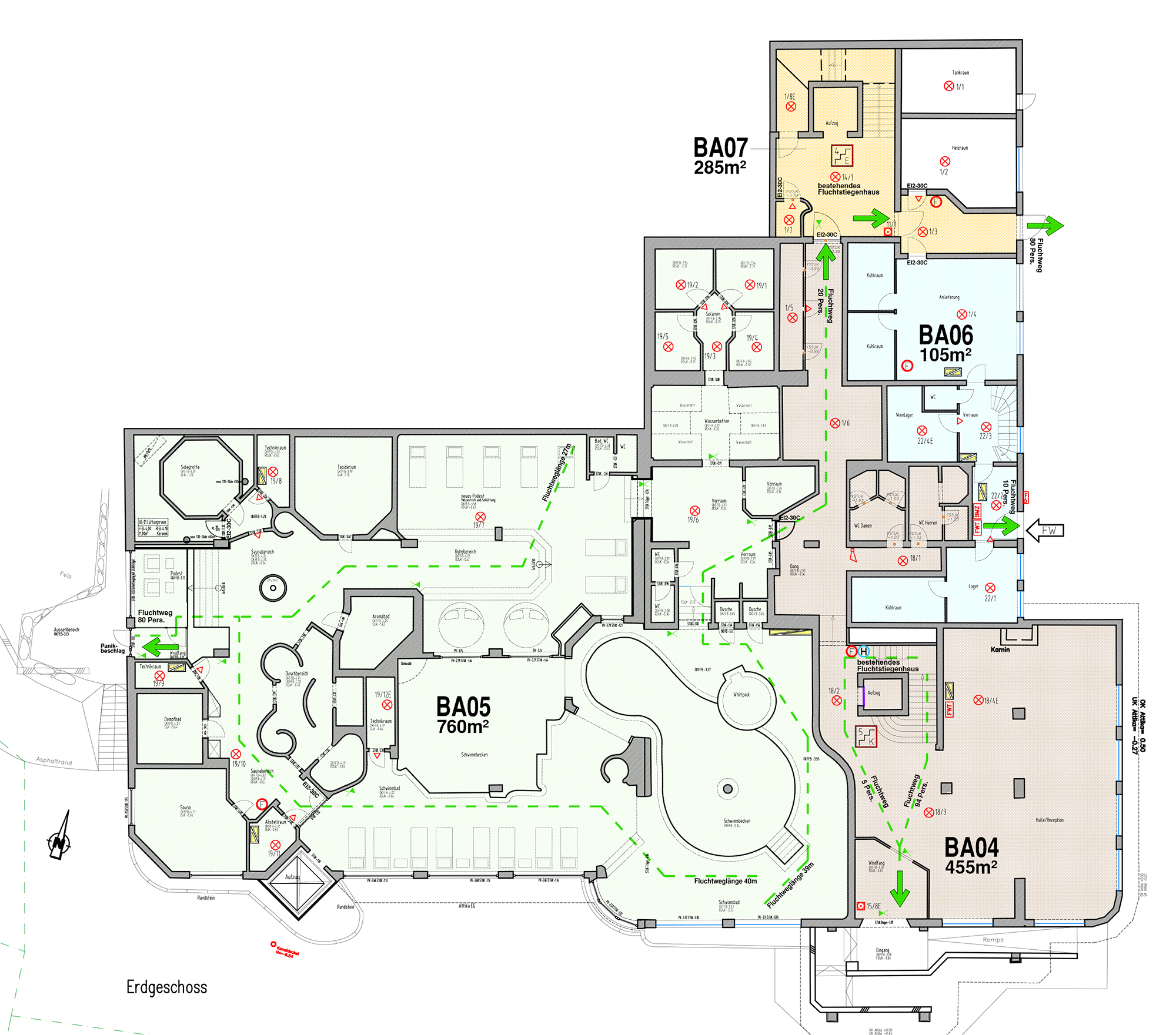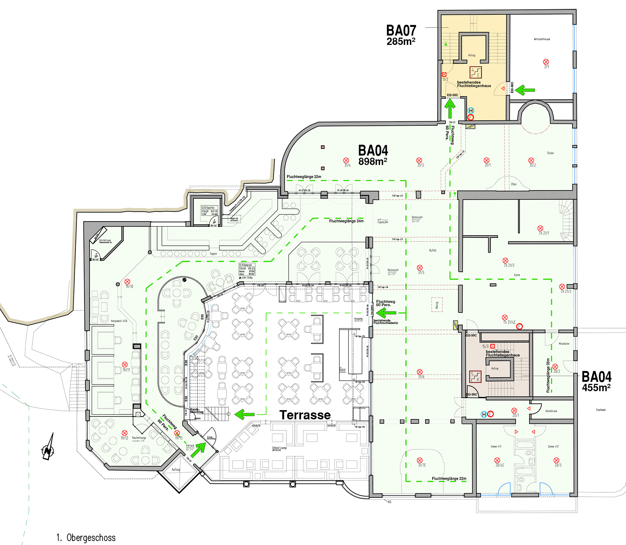 Die bestehende Hotelanlage verfügt über insgesamt 58 Zimmer und 4 Suiten. Ergänzt wird das Raumangebot durch einen großzügigen Restaurant- und Barbereich inklusive professionell ausgestatteter Küche, einen Wellnessbereich mit Hallenbad, einen separaten Beauty- und Fitnessbereich sowie eine Lobby mit Rezeption. Zusätzlich stehen umfangreiche Technik- und Lagerflächen zur Verfügung. Die Erschließung erfolgt über zwei getrennte Stiegenhäuser sowie insgesamt drei Aufzugsanlagen, was eine effiziente Erschließung und flexible Nutzung der einzelnen Ebenen ermöglicht.