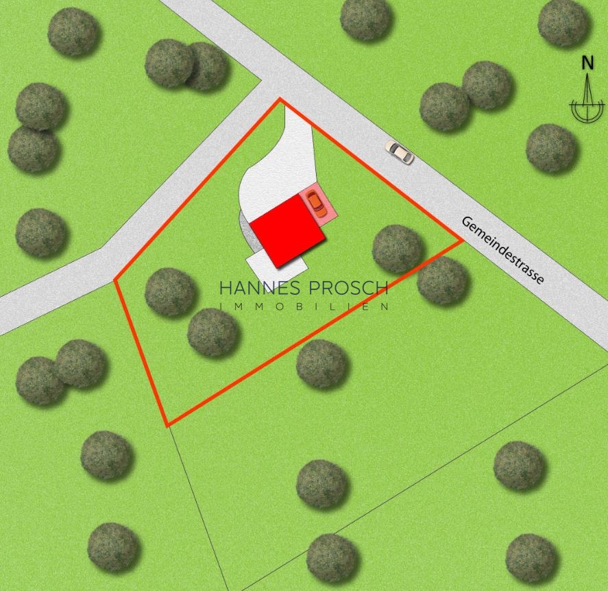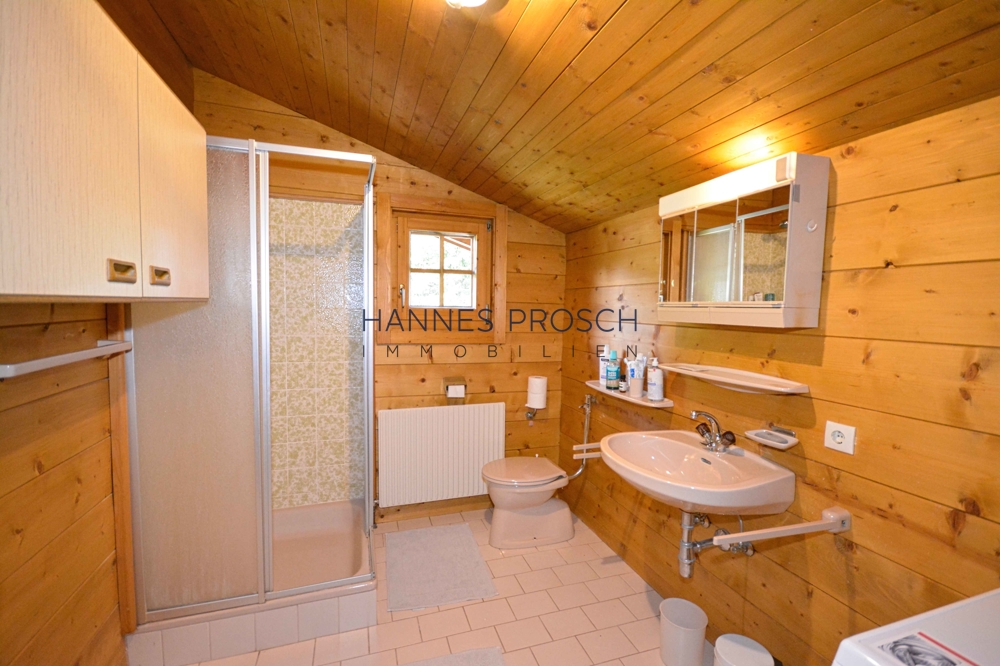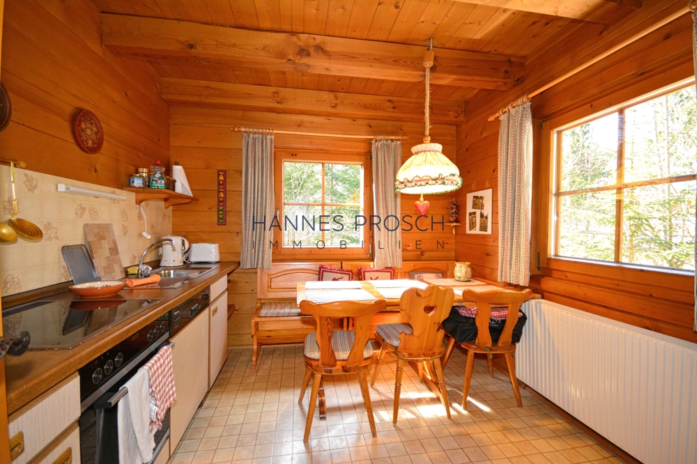 Bebaut ist die Liegenschaft mit einem gemütlichen Blockhaus samt Carport.