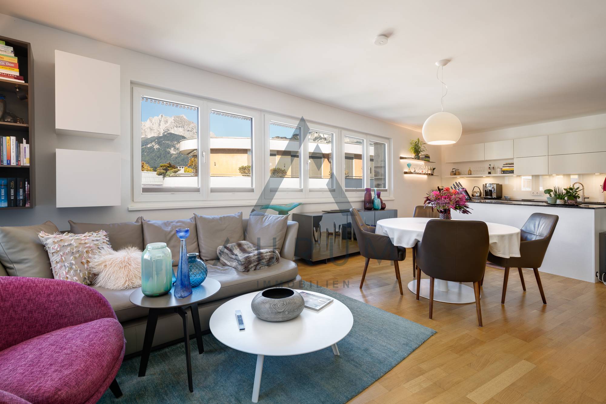 Diese Wohnung befindet sich in sonniger Zentrumslage von St. Johann in Tirol und bietet einen Ausblick auf den Wilden Kaiser und das Kitzbüheler Horn.