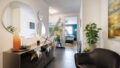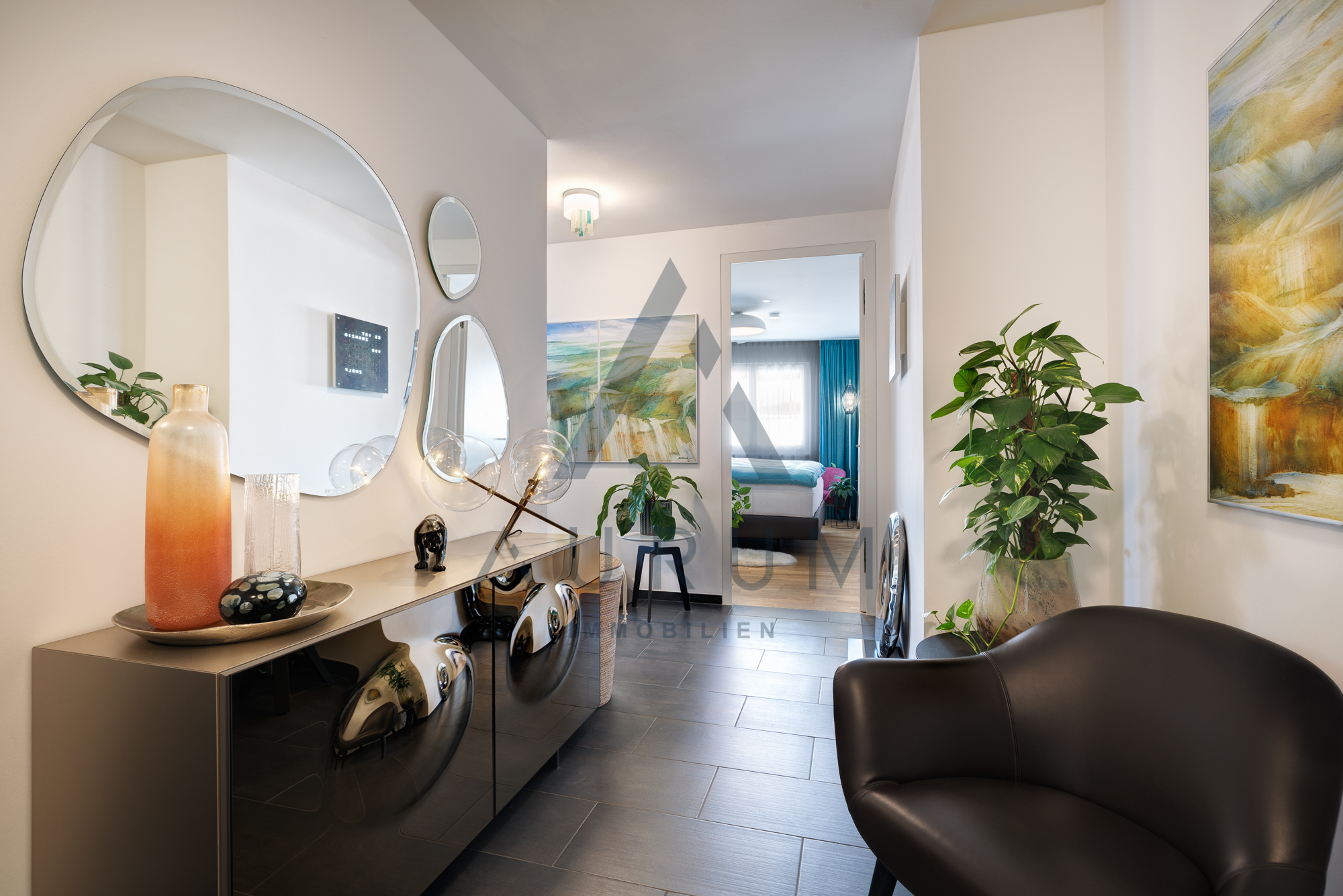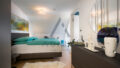 Die großzügig geschnittene Wohnung verfügt über einen offenen Wohn- Essbereich mit integrierter Profiküche mit hochwertigen Miele-Geräten, einen Masterbereich mit großem Badezimmer, ein weiteres Schlafzimmer mit Duschbad, sowie einen großzügigen Eingangsbereich, ein Gäste WC und einen Abstellraum mit Waschmaschine und Trockner.