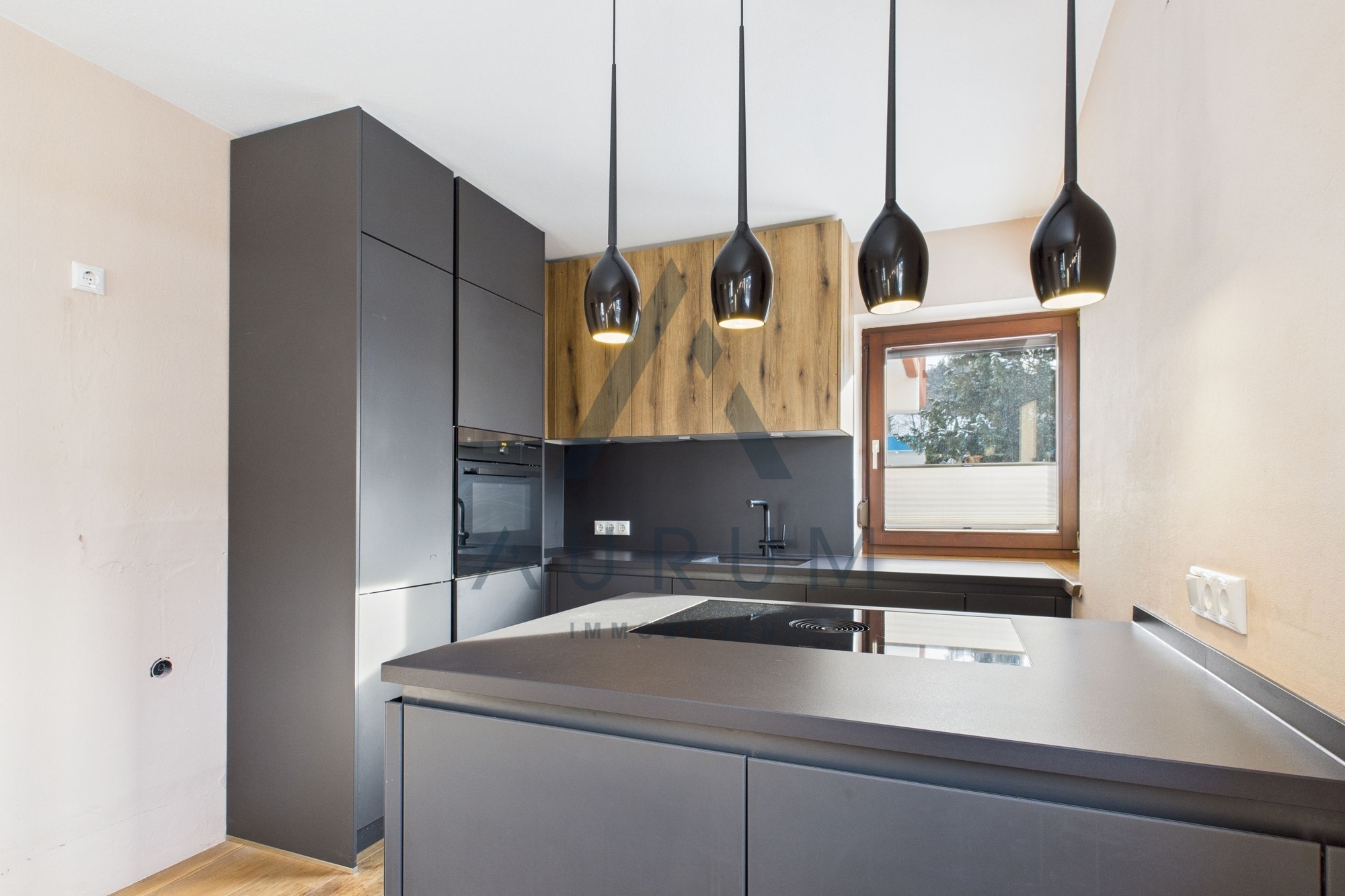Die Wohnung besteht aus einem Wohnzimmer mit offenem Kamin und einer ca. 12 m² großen Süd-/Westterrasse, sowie einer separaten Küche mit Essbereich und Nordbalkon (ca. 4 m²). Weiters verfügt diese Gartenwohnung über drei Schlafzimmer, ein Badezimmer, ein separates Gäste WC und einen Abstellraum.