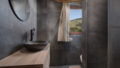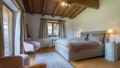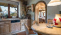 Das Haus ist an einen Hang gebaut und verfügt über zwei Geschosse. Im Erdgeschoss befindet sich das große Wohnzimmer mit Sichtdachstuhl, Dielenboden und Kamin, die Küche und drei Schlafzimmer mit jeweils einem Badezimmern ensuite und ein Gäste-WC.
