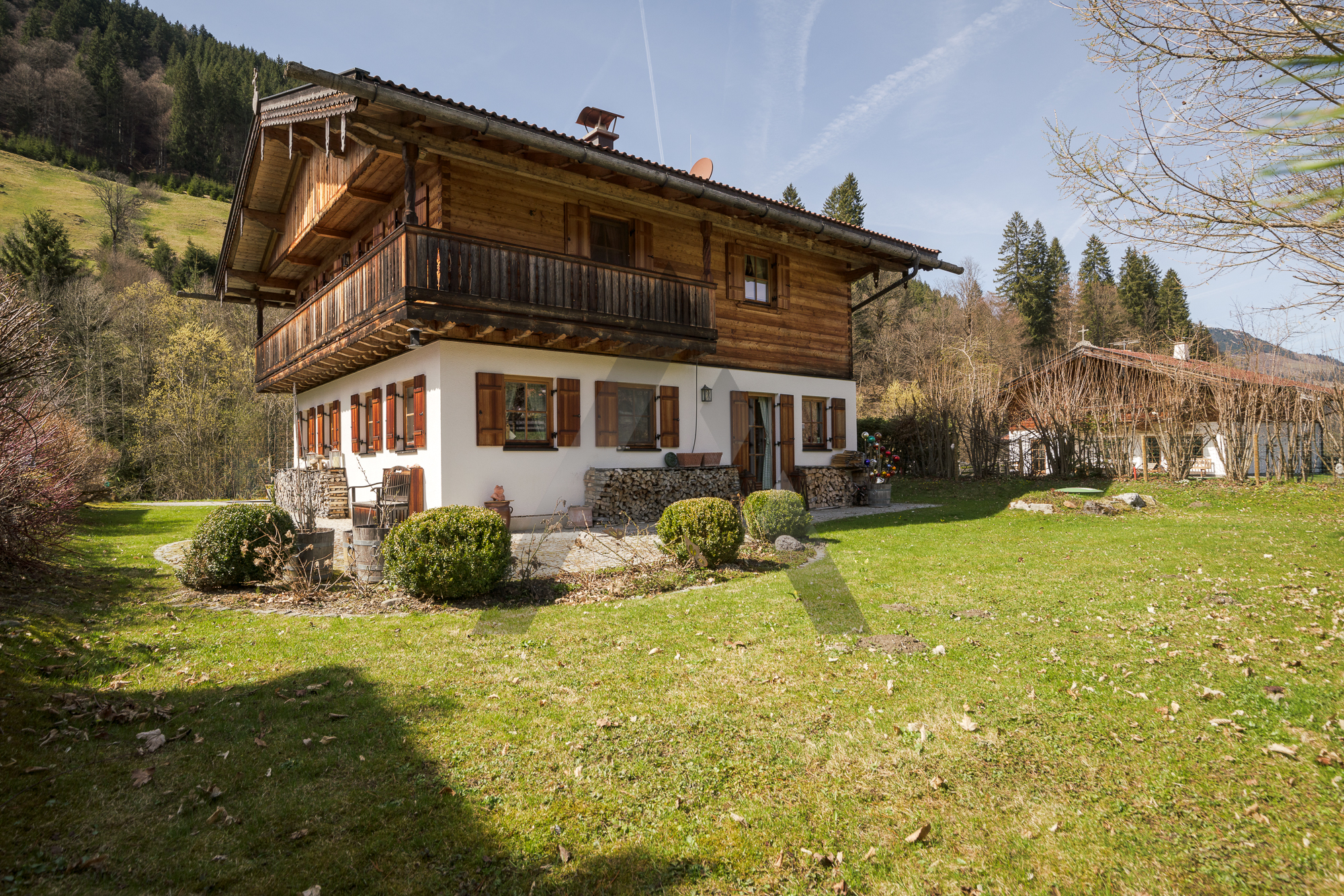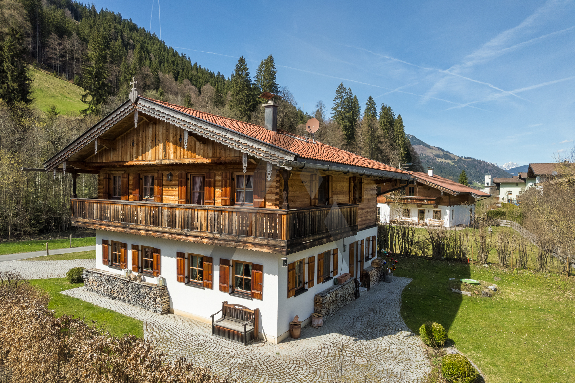 In ruhiger Lage im idyllischen Ort Aschau bei Kirchberg an einem Bachlauf gelegen, befindet sich dieses im Tiroler traditionellen Stil erbaute Chalet.