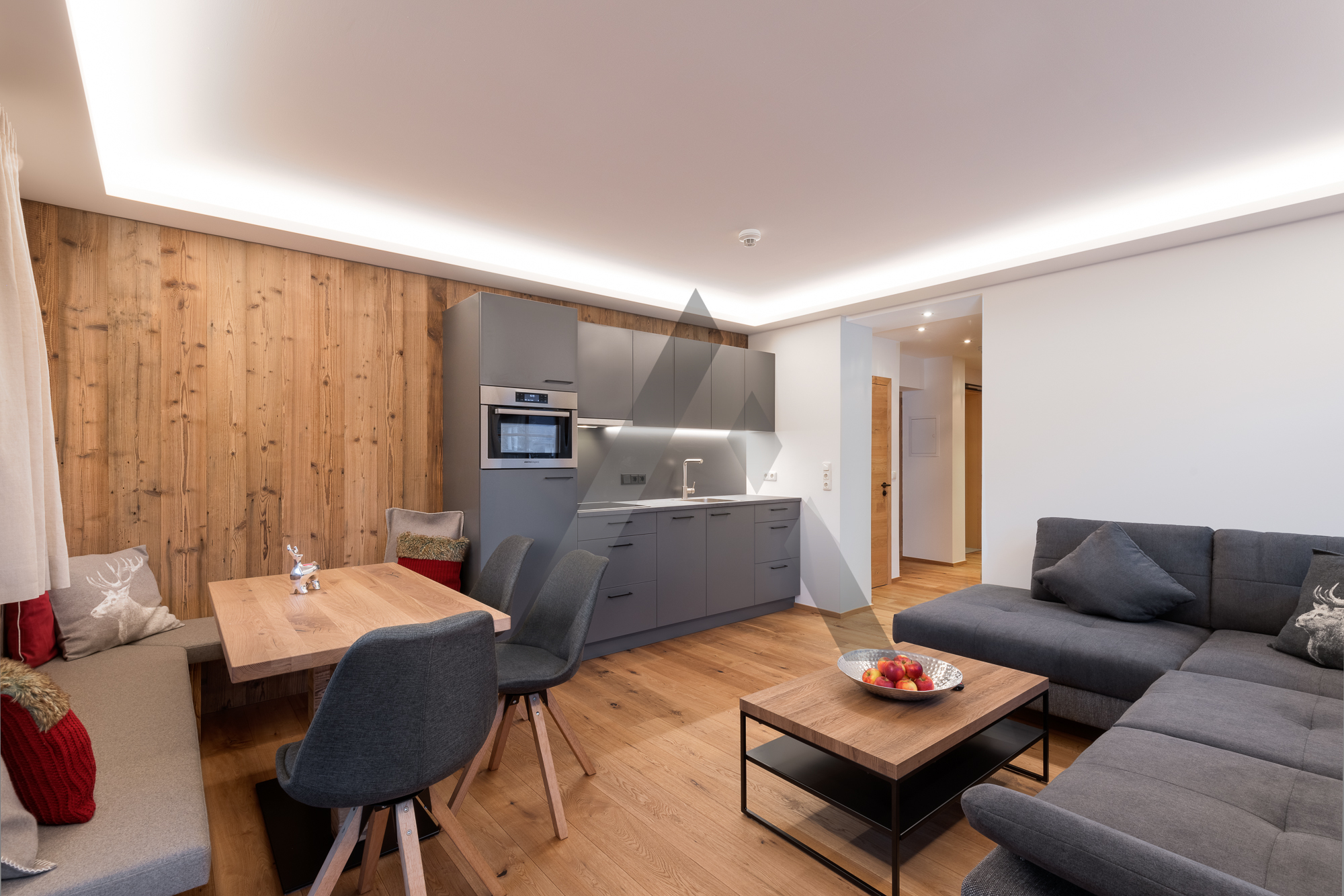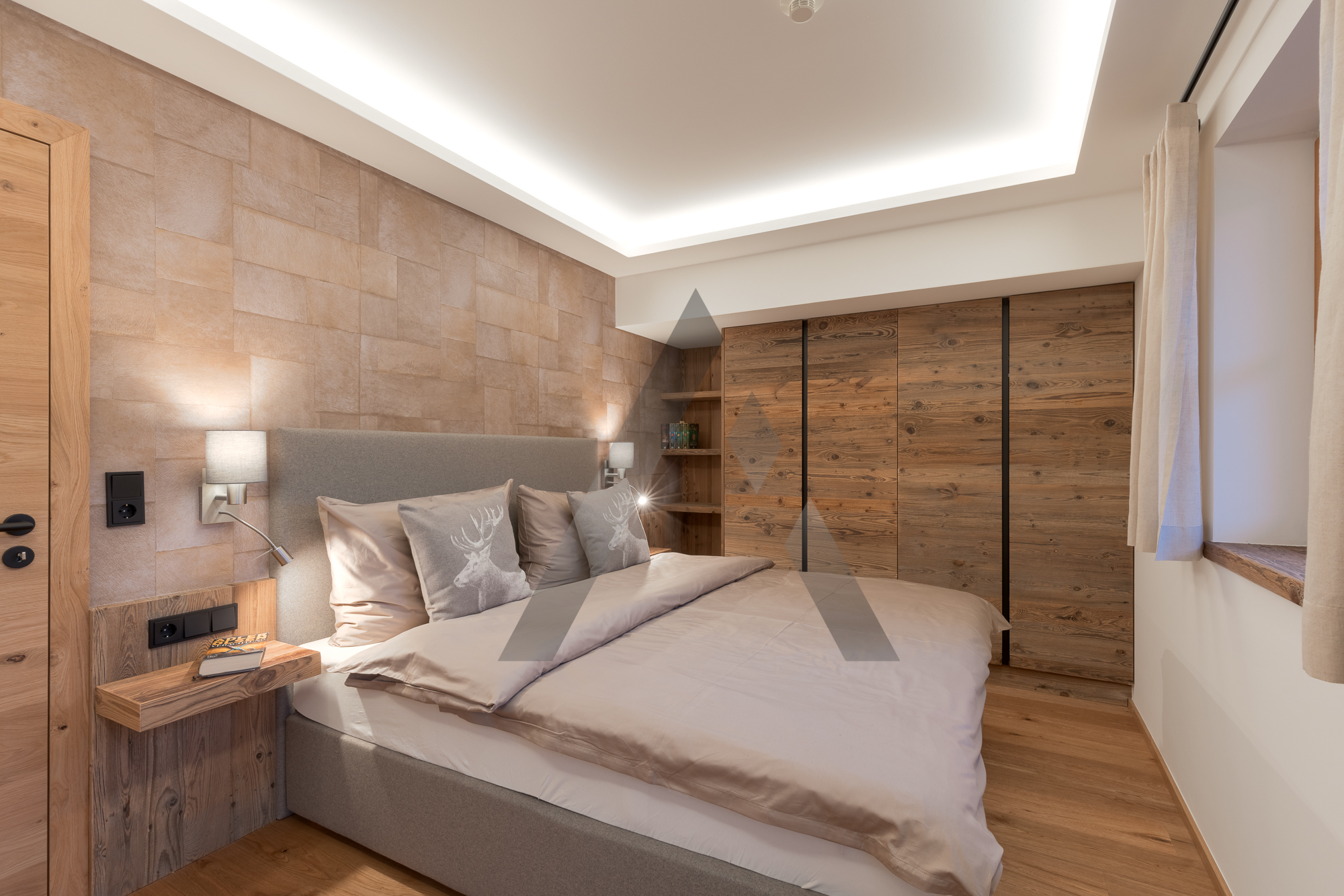 Die Wohnung wurde mit hochwertigen Materialien und komplett im modern-alpinen Stil ausgestattet.